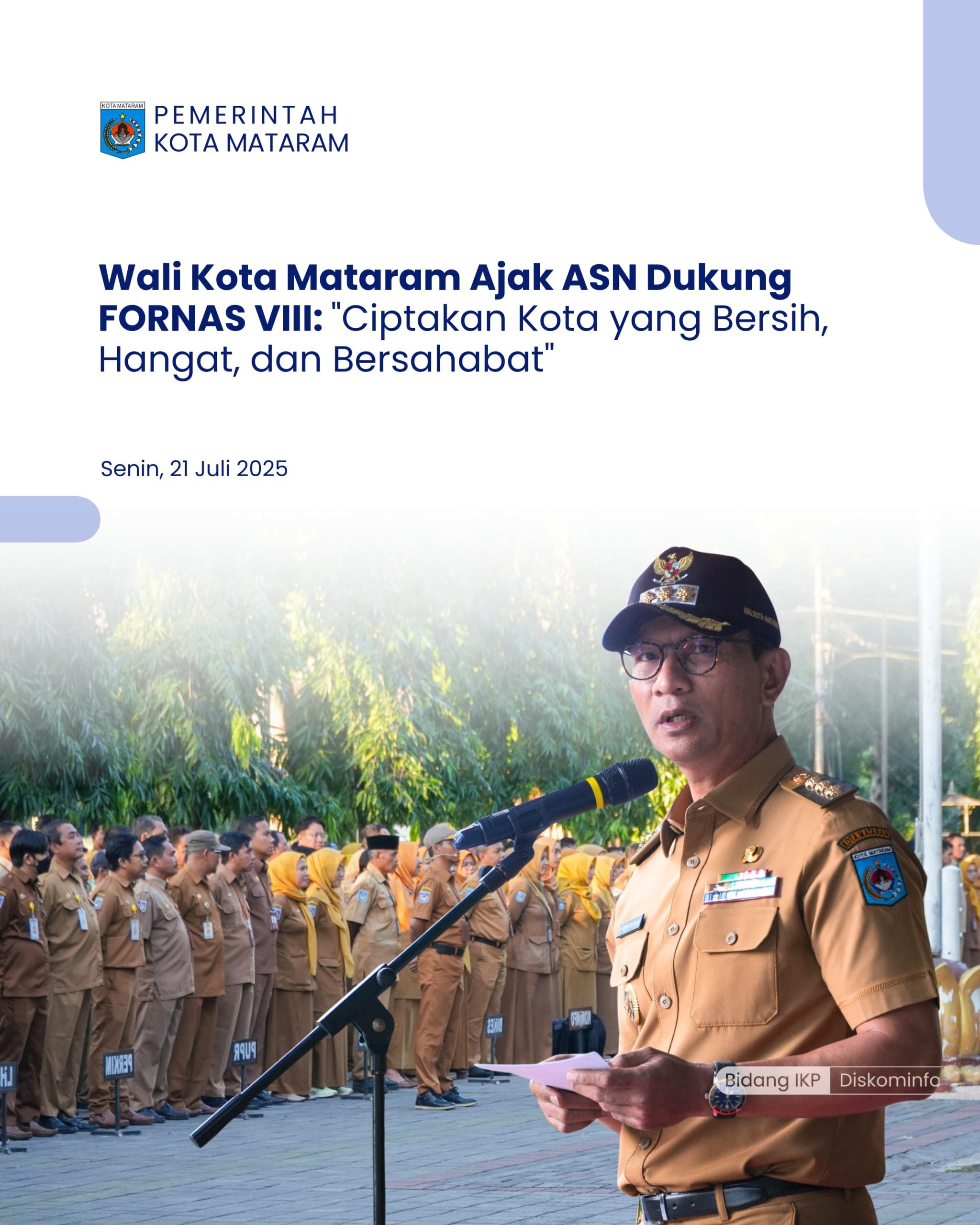 Wali Kota Mataram Ajak ASN Dukung FORNAS VIII: “Ciptakan Kota yang Bersih, Hangat, dan Bersahabat”