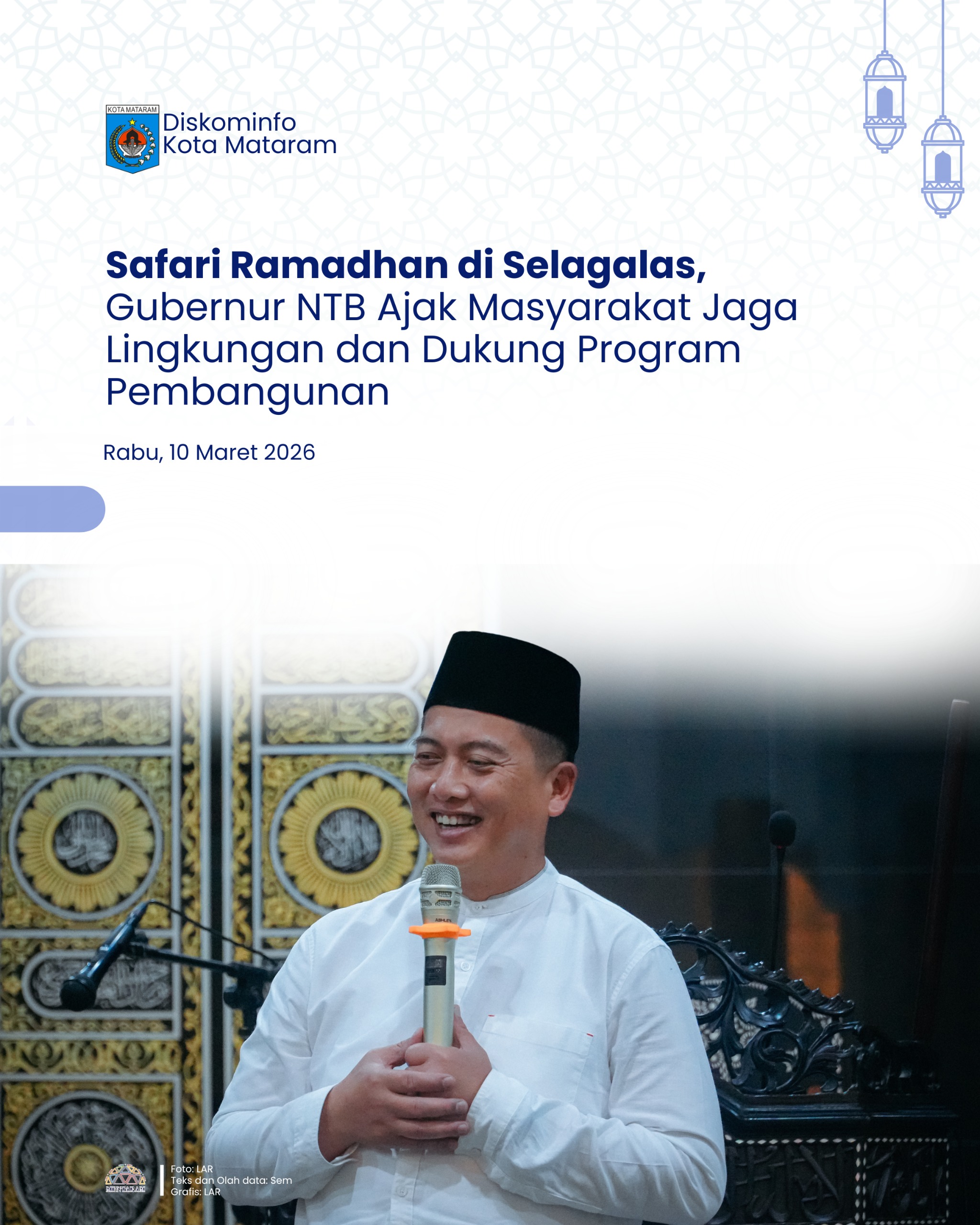 Mataram – Pemerintah Provinsi Nusa Tenggara Barat melaksanakan kegiatan Safari Ramadhan di Kota Mataram yang dipusatkan di Masjid Al-Ikhlas, Kelurahan Selagalas. Kegiatan ini menjadi ajang silaturahmi antara pemerintah daerah dan masyarakat sekaligus sarana menyampaikan berbagai program pembangunan yang tengah dijalankan di NTB.