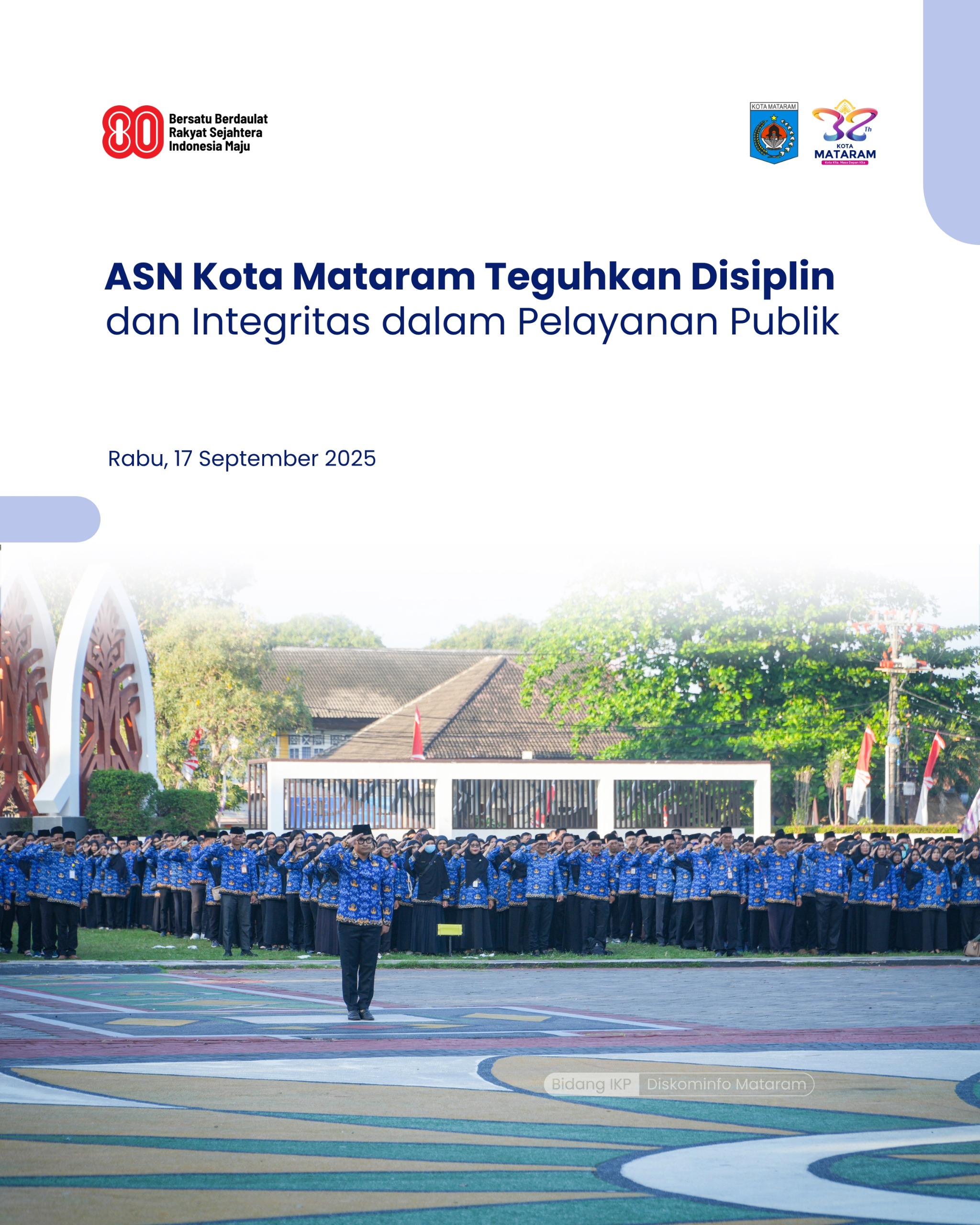 Pemerintah Kota Mataram menegaskan, kedisiplinan ASN merupakan tolok ukur keberhasilan dalam mewujudkan tata kelola pemerintahan yang baik. Dengan etos kerja yang kuat, pelayanan publik yang berkualitas akan semakin nyata, dan pada akhirnya meningkatkan kepercayaan masyarakat terhadap pemerintah.