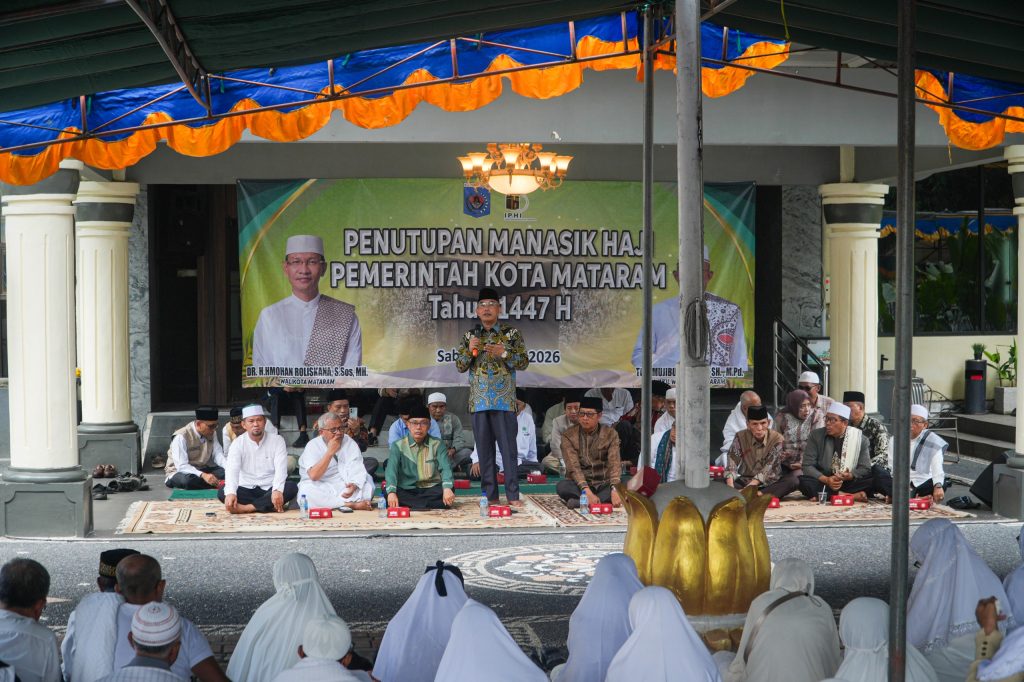Mataram – Bimbingan Manasik Haji Gratis bagi Jamaah Calon Haji (JCH) Kota Mataram resmi ditutup oleh Wakil Wali Kota Mataram, TGH. Mujiburrahman, di Halaman Kantor Wali Kota Mataram, Sabtu (04/04/2026).