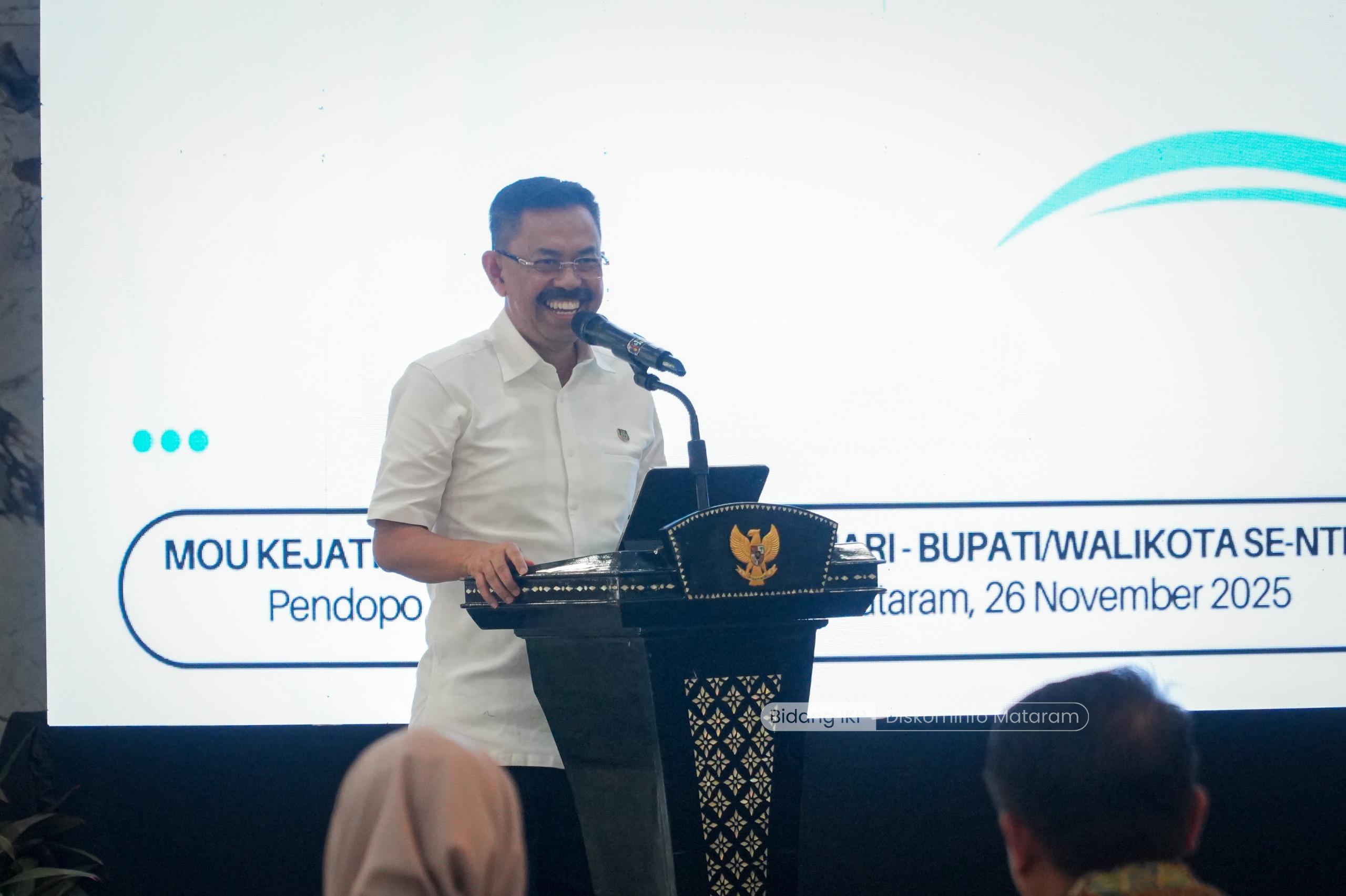 Kegiatan yang berlangsung di Pendopo Tengah Gubernur NTB pada Rabu (26/11/2025) tersebut mempertemukan Kepala Kejaksaan Tinggi NTB, Gubernur NTB, para Kepala Kejaksaan Negeri, serta Bupati dan Wali Kota se-NTB. Wakil Wali Kota Mataram, TGH Mujiburrahman, hadir mewakili Pemerintah Kota Mataram, menegaskan komitmen daerah terhadap arah baru penegakan hukum nasional.