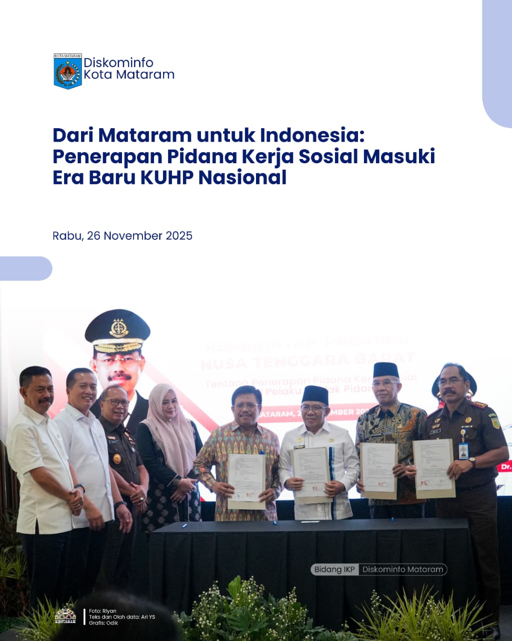Keterlibatan aktif Kota Mataram dalam agenda ini menandai peran strategis daerah dalam mengawal implementasi KUHP nasional. Dengan langkah yang terstruktur, Mataram dan NTB berkomitmen memastikan pidana kerja sosial berjalan manusiawi, transparan, dan memberi manfaat luas bagi masyarakat. * (TK-Diskominfo)
