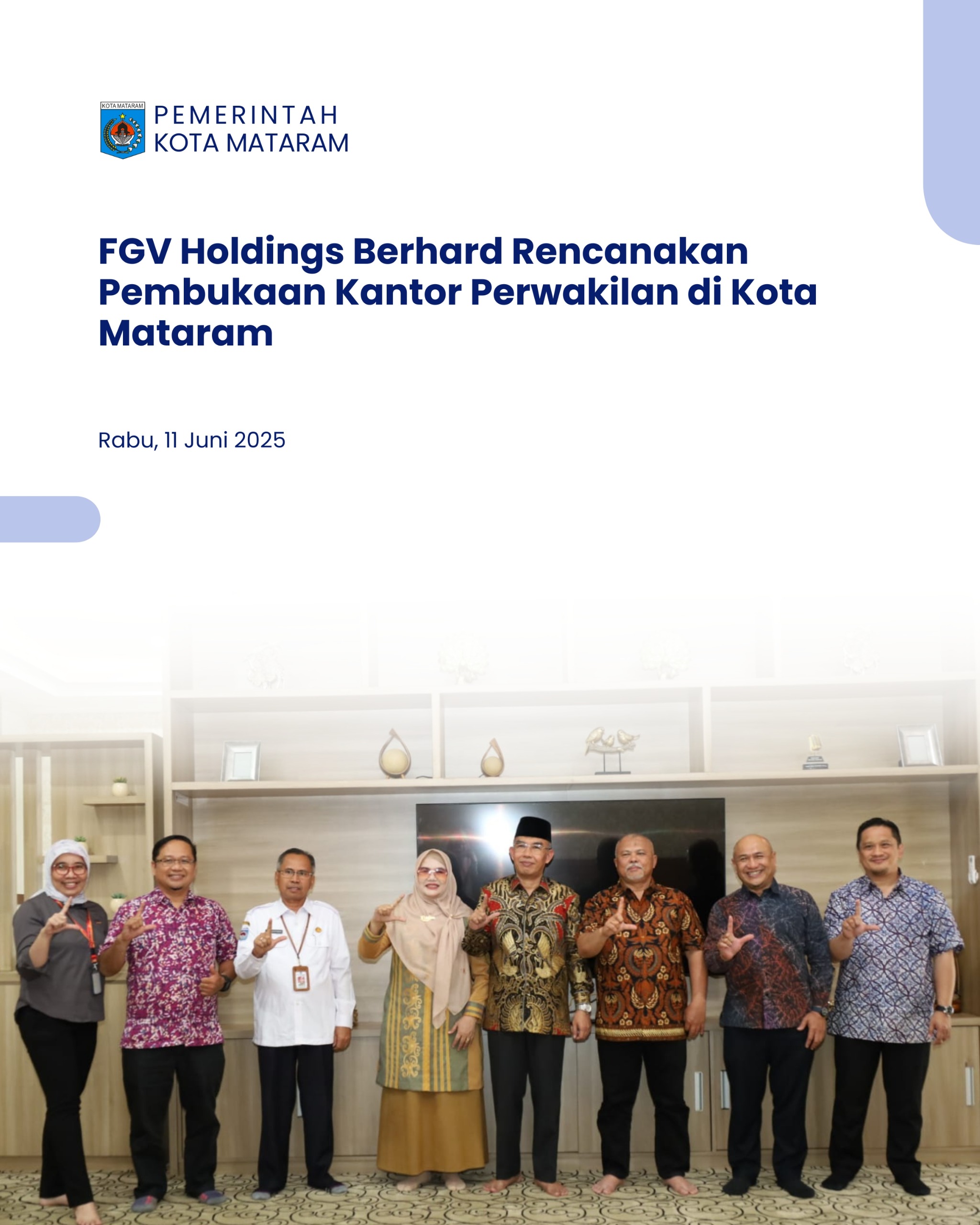 FGV Holdings Berhad, perusahaan agribisnis dan komoditas pertanian global yang berbasis di Kuala Lumpur, Malaysia, berencana membuka kantor perwakilan di Kota Mataram. Rencana ini disampaikan oleh Borhan Bin Bachi, Group Director Plantation Division FGV, saat melakukanpertemuan dengan Wakil Wali Kota Mataram, TGH Mujiburrahman, di Pendopo Margapati. PadaRabu (11/06/2025).