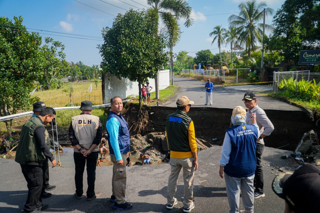 Selanjutnya, Wali Kota melanjutkan agenda peninjauan ke lokasi jembatan putus di Perumahan Mahkota, Kelurahan Bertais, Kecamatan Sandubaya.