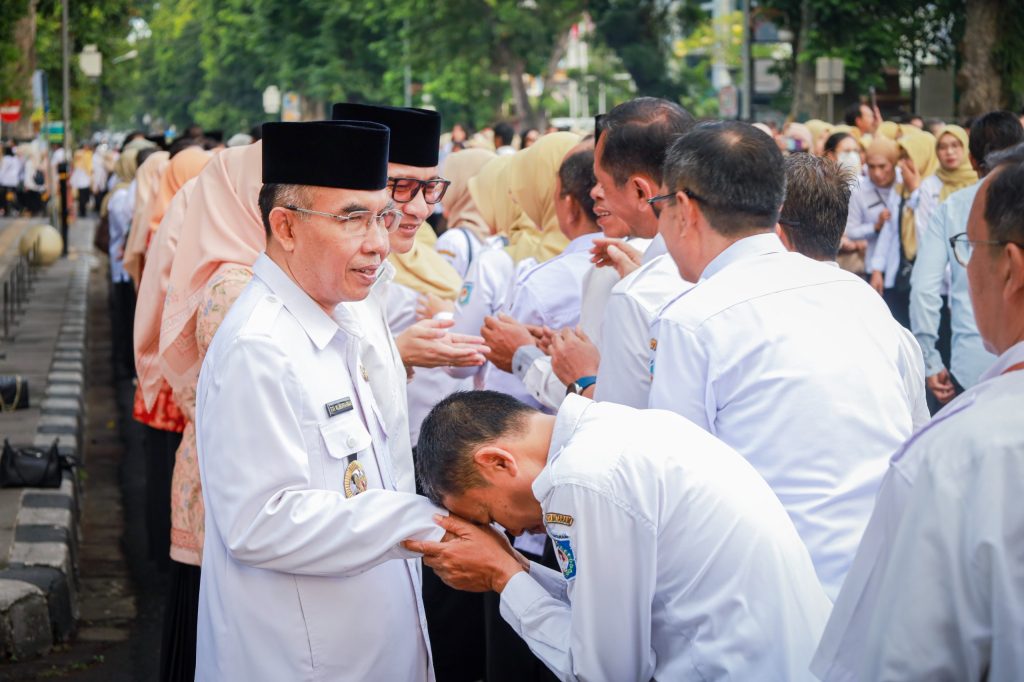 Dalam sambutannya, Wali Kota Mataram H. Mohan Roliskana menyampaikan permohonan maaf lahir dan batin kepada seluruh pegawai, seraya menegaskan pentingnya menjaga semangat kebersamaan dalam menjalankan tugas pelayanan publik.