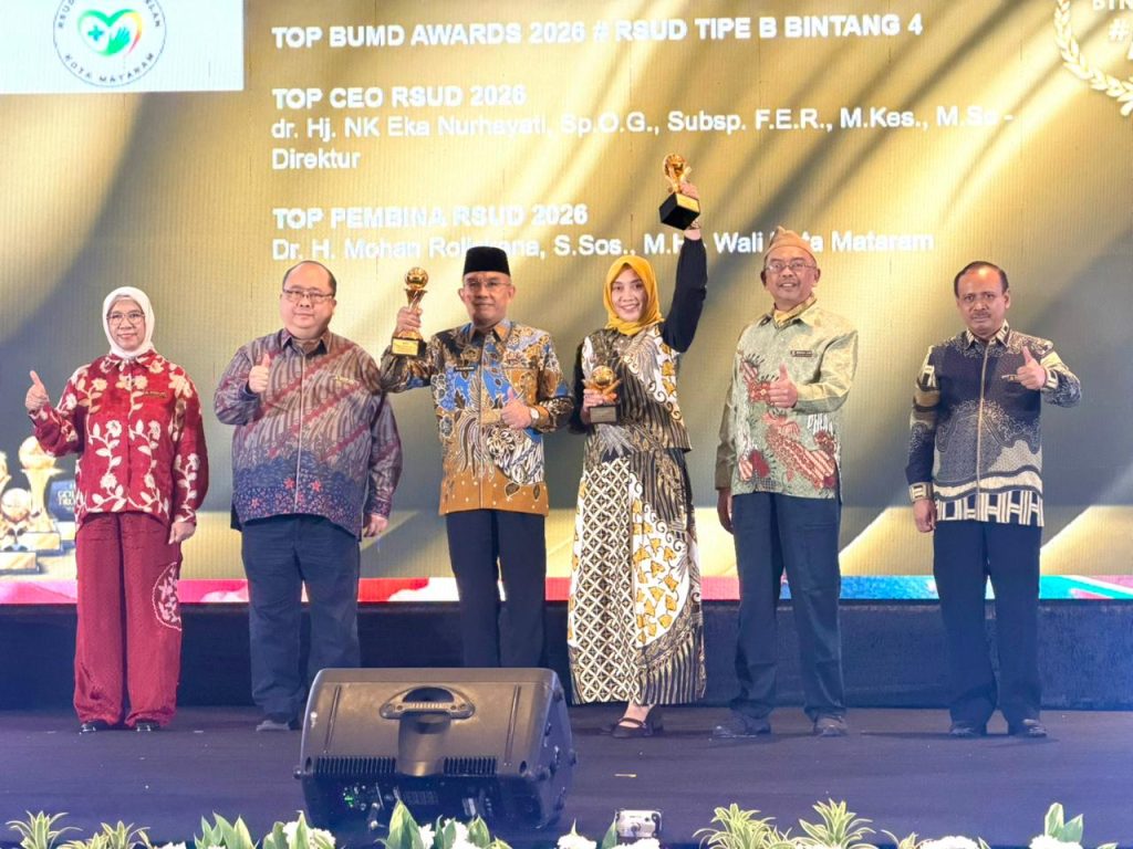 Capaian tersebut kemudian dilengkapi oleh keberhasilan RSUD H. Moh. Ruslan Kota Mataram yang meraih penghargaan Top BUMD Awards 2026 #RSUD Tipe B – Bintang 4, serta Direktur RSUD, dr. Hj. NK Eka Nurhayati, yang dinobatkan sebagai Top CEO RSUD 2026. Tiga penghargaan ini sekaligus menegaskan capaian “hattrick” prestasi Kota Mataram di tingkat nasional.
