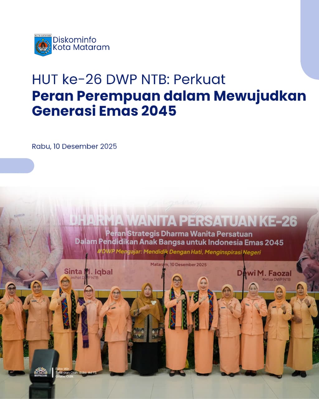 Peringatan HUT ke-26 ini diharapkan semakin memperkuat peran DWP dalam peningkatan kualitas pendidikan, kesehatan keluarga, penguatan ekonomi perempuan, serta penanaman nilai kebangsaan dan etika sosial bagi masyarakat NTB.