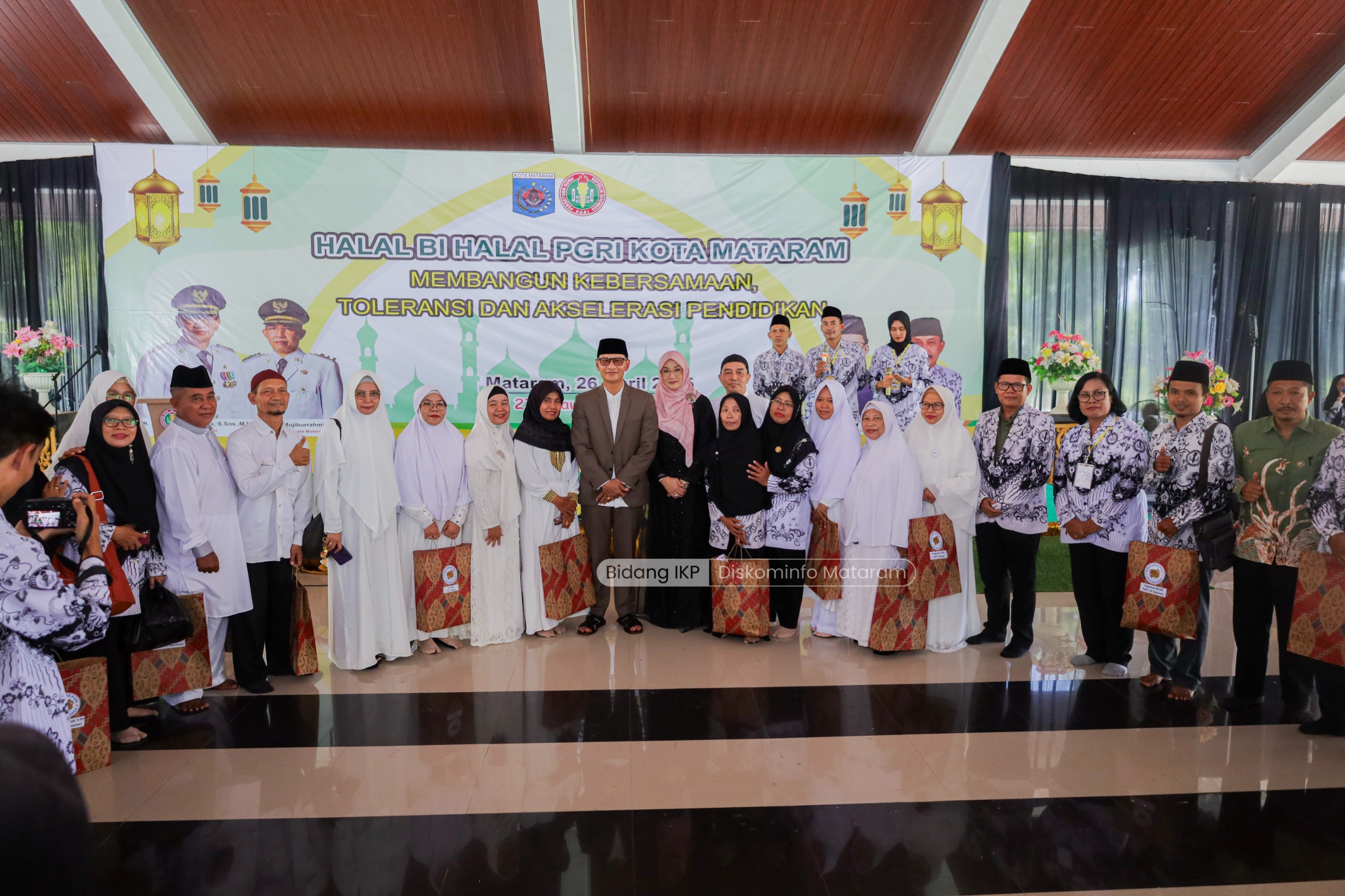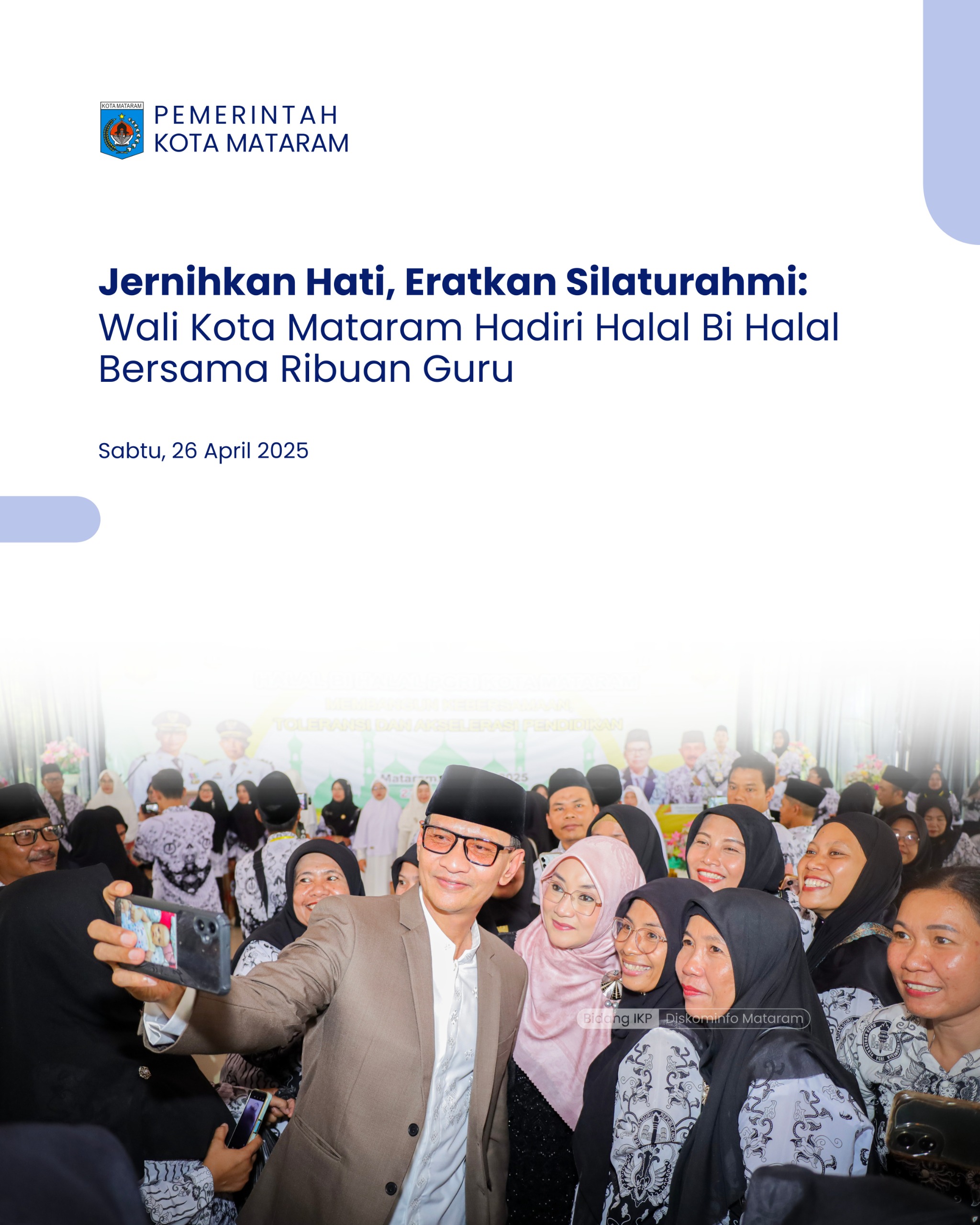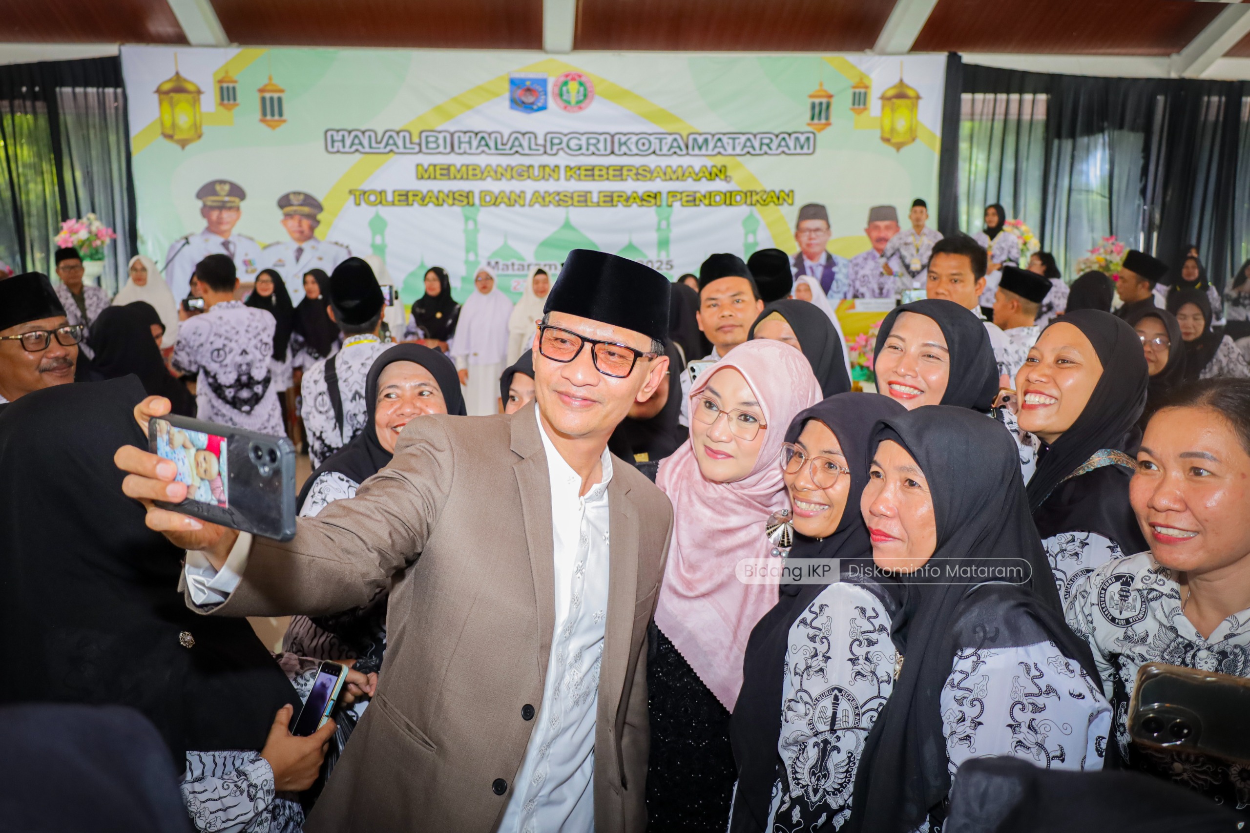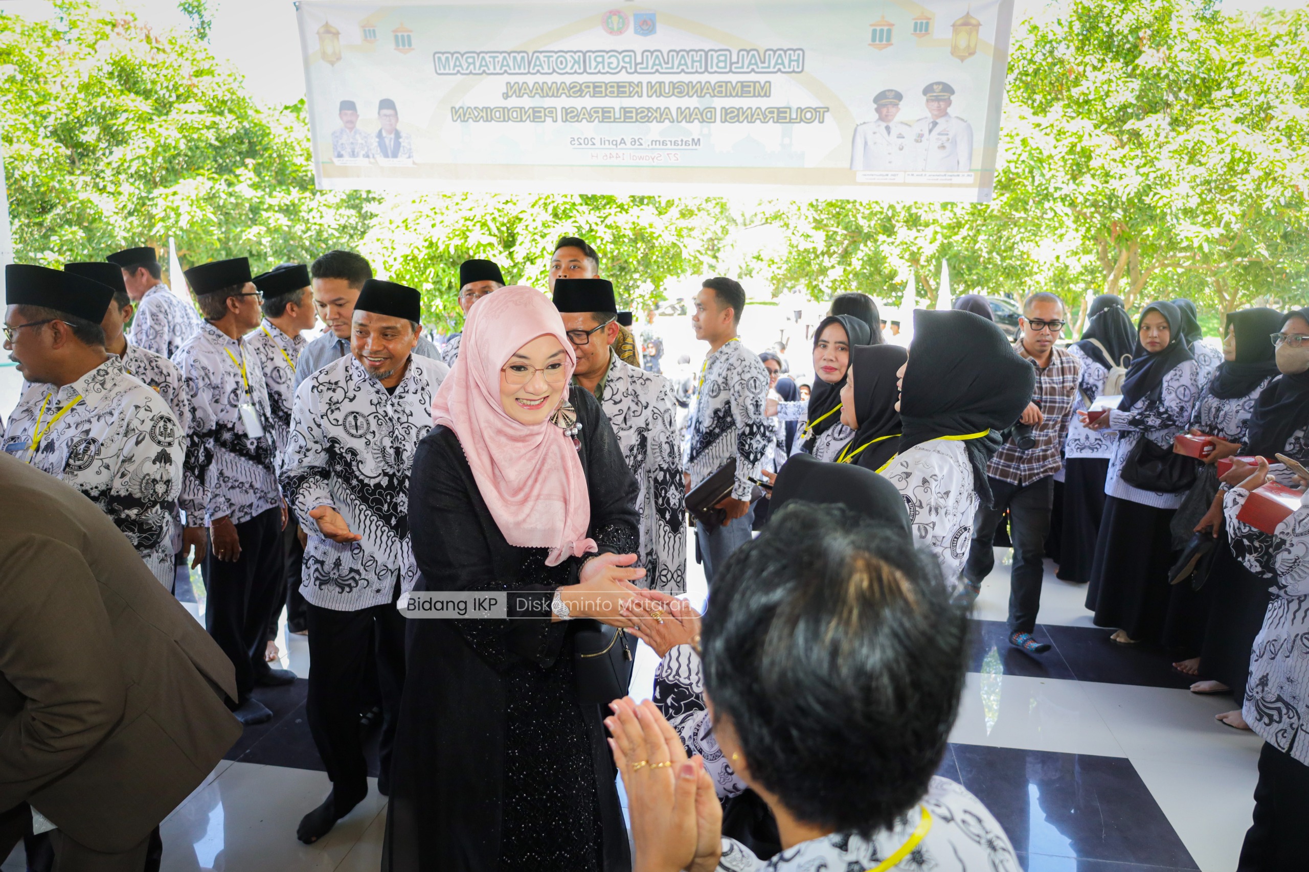 Kegiatan Halal Bi Halal yang mengusung tema “Membangun Kebersamaan, Toleransi, dan Akselerasi Pendidikan” ini turut dihadiri oleh Ketua TP PKK Kota Mataram Hj. Kinnastri Mohan Roliskana, Ketua PGRI Kota Mataram Imam Purwanto, dan ribuan guru dari jenjang PAUD, TK, SD, SMP, SMK, hingga SLB se-Kota Mataram.Di tengah suasana penuh kekeluargaan dan canda tawa ringan antarguru, terselip semangat yang sama: menjaga kekompakan, memperkuat keteladanan, dan bersama-sama mengantar anak-anak Mataram menuju masa depan yang lebih baik. * (TK-Diskominfo)