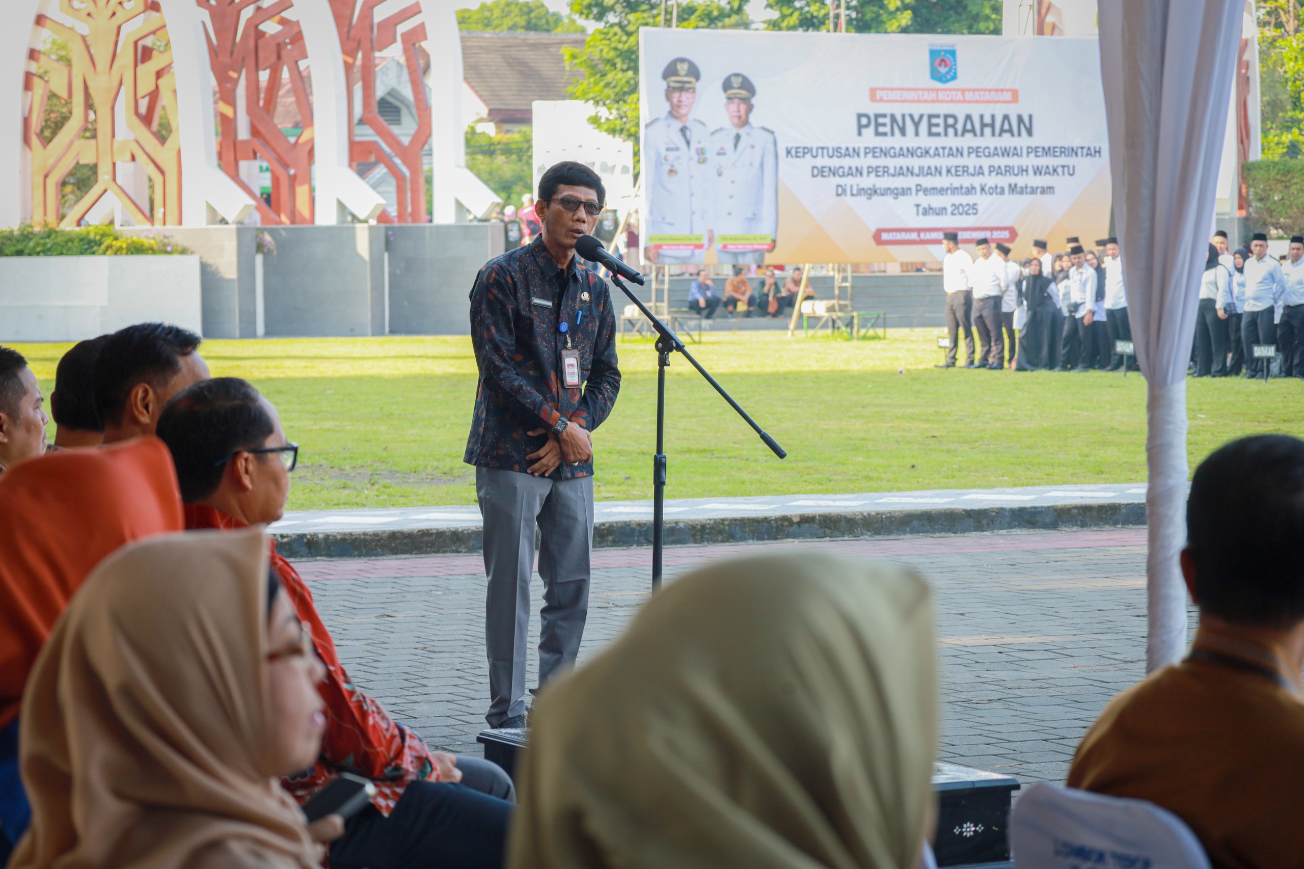 Sebanyak 3.067 orang resmi menerima SK PPPK Paruh Waktu, terdiri dari 50 orang guru, 437 tenaga kesehatan, dan 2.580 tenaga pelaksana. Penyerahan SK dilakukan secara simbolis oleh Wali Kota Mataram, disaksikan jajaran pimpinan perangkat daerah serta para penerima SK dari berbagai unit kerja di lingkungan Pemerintah Kota Mataram.