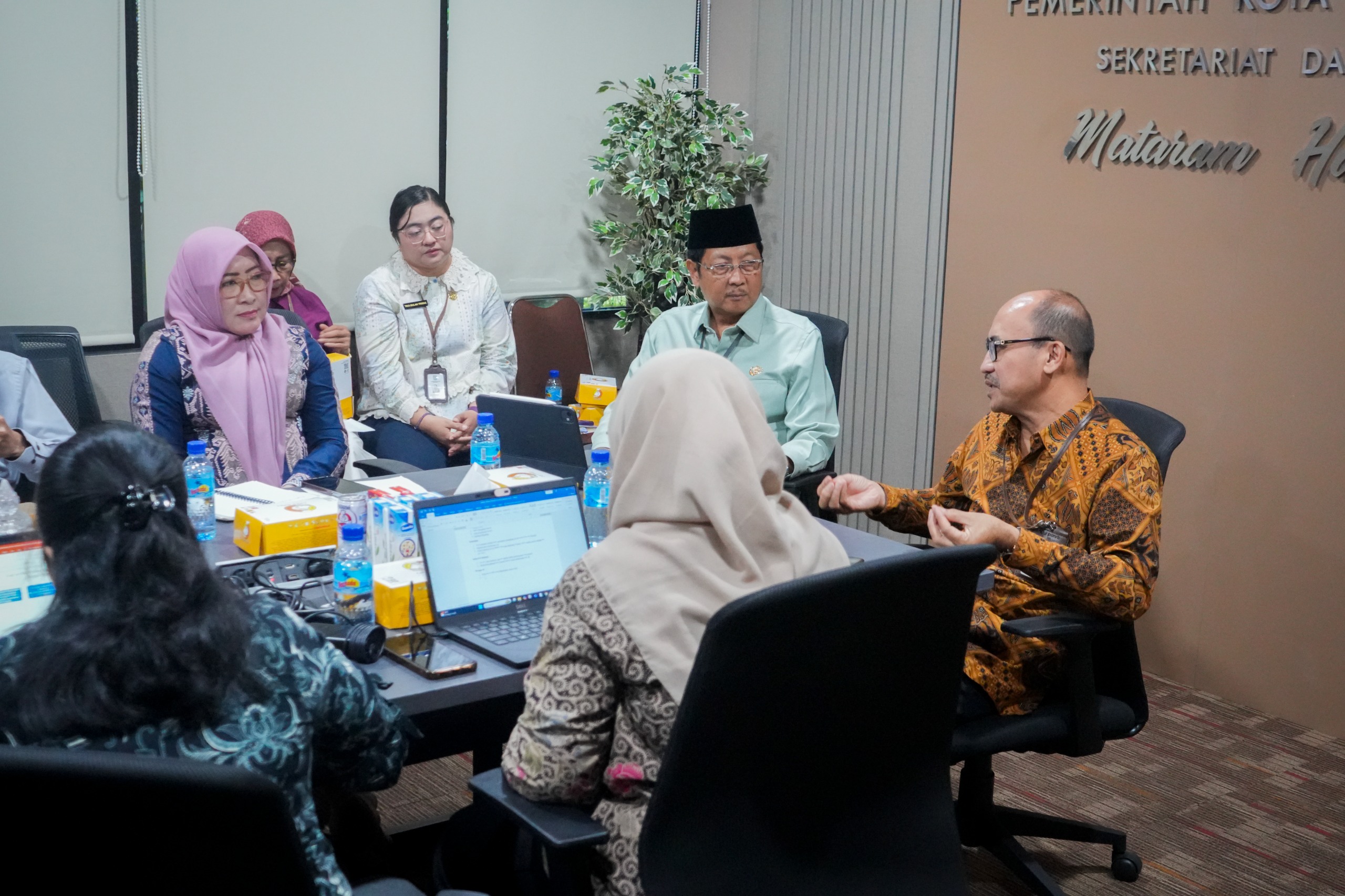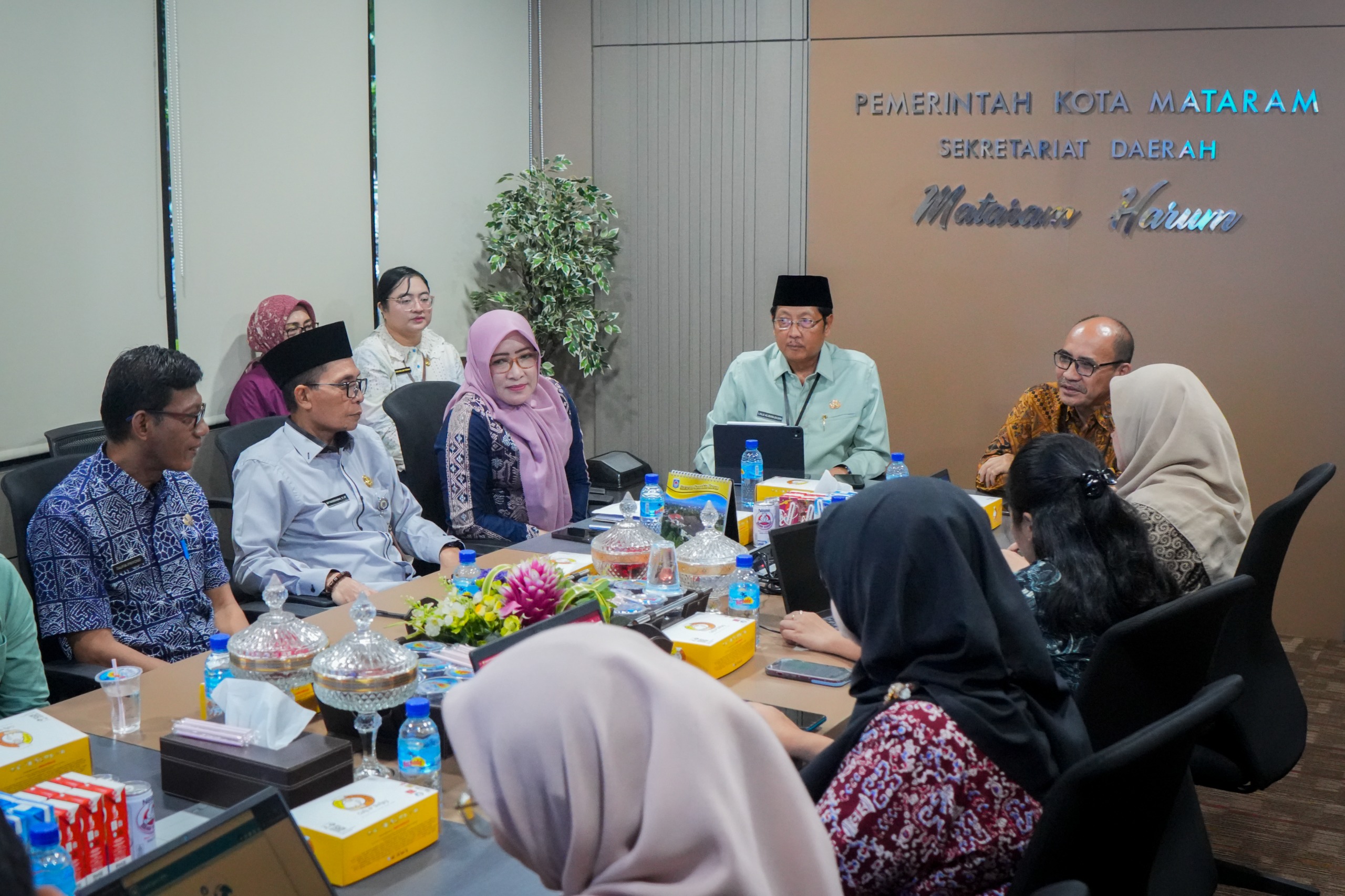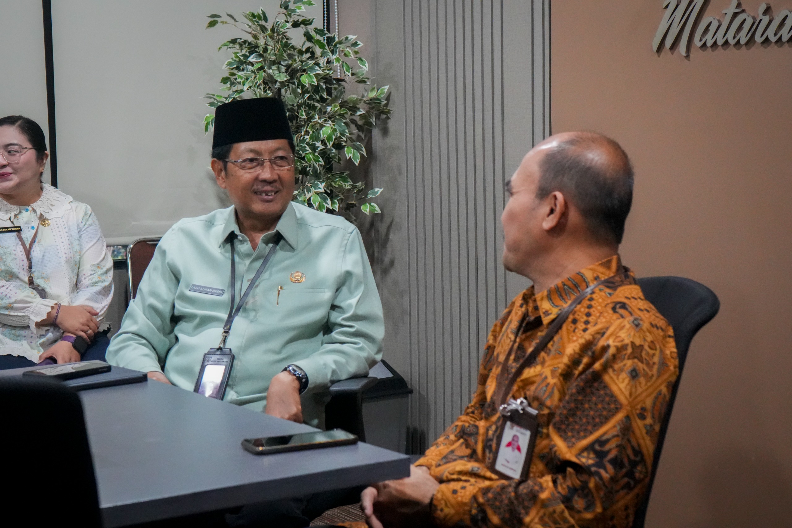 Mataram — Sekretaris Daerah (Sekda) Kota Mataram, H. L. Alwan Basri, menyambut hangat kehadiran Drs. Agus Uji Hantara, Ak., M.E., Asisten Deputi Perumusan dan Koordinasi Kebijakan Penerapan Reformasi Birokrasi Deputi Bidang RBKUNWAS Kementerian Pendayagunaan Aparatur Negara dan Reformasi Birokrasi (KemenPANRB) RI, beserta jajaran, di Ruang Kerja Sekda Kota Mataram, pada Jumat (12/12/2025).