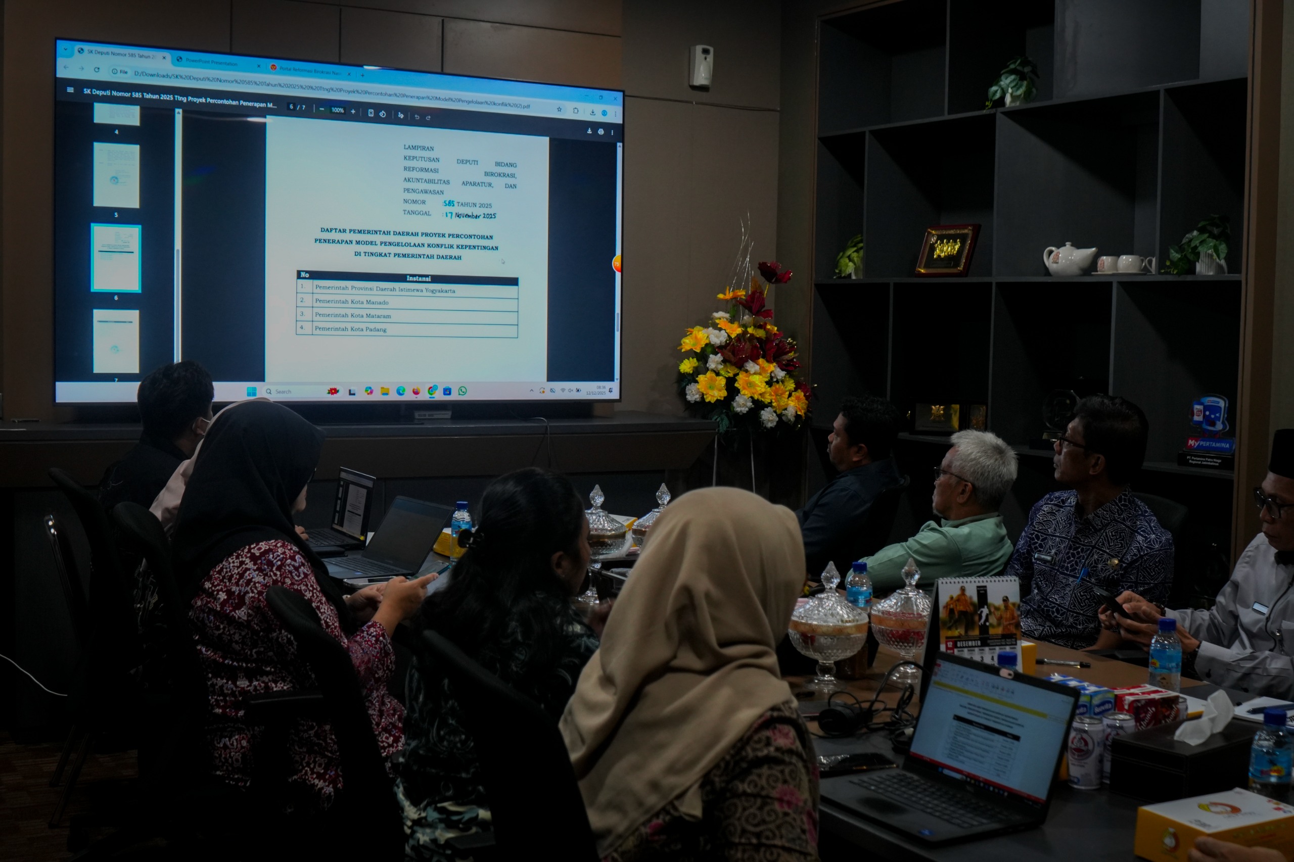 Sekda Kota Mataram, didampingi jajaran dan perangkat daerah terkait, menyampaikan apresiasi atas perhatian KemenPANRB terhadap upaya penguatan tata kelola pemerintahan di Kota Mataram. Melalui kegiatan Monev ini, diharapkan implementasi pengelolaan konflik kepentingan di lingkungan Pemkot Mataram dapat semakin optimal, terukur, dan selaras dengan standar nasional reformasi birokrasi.