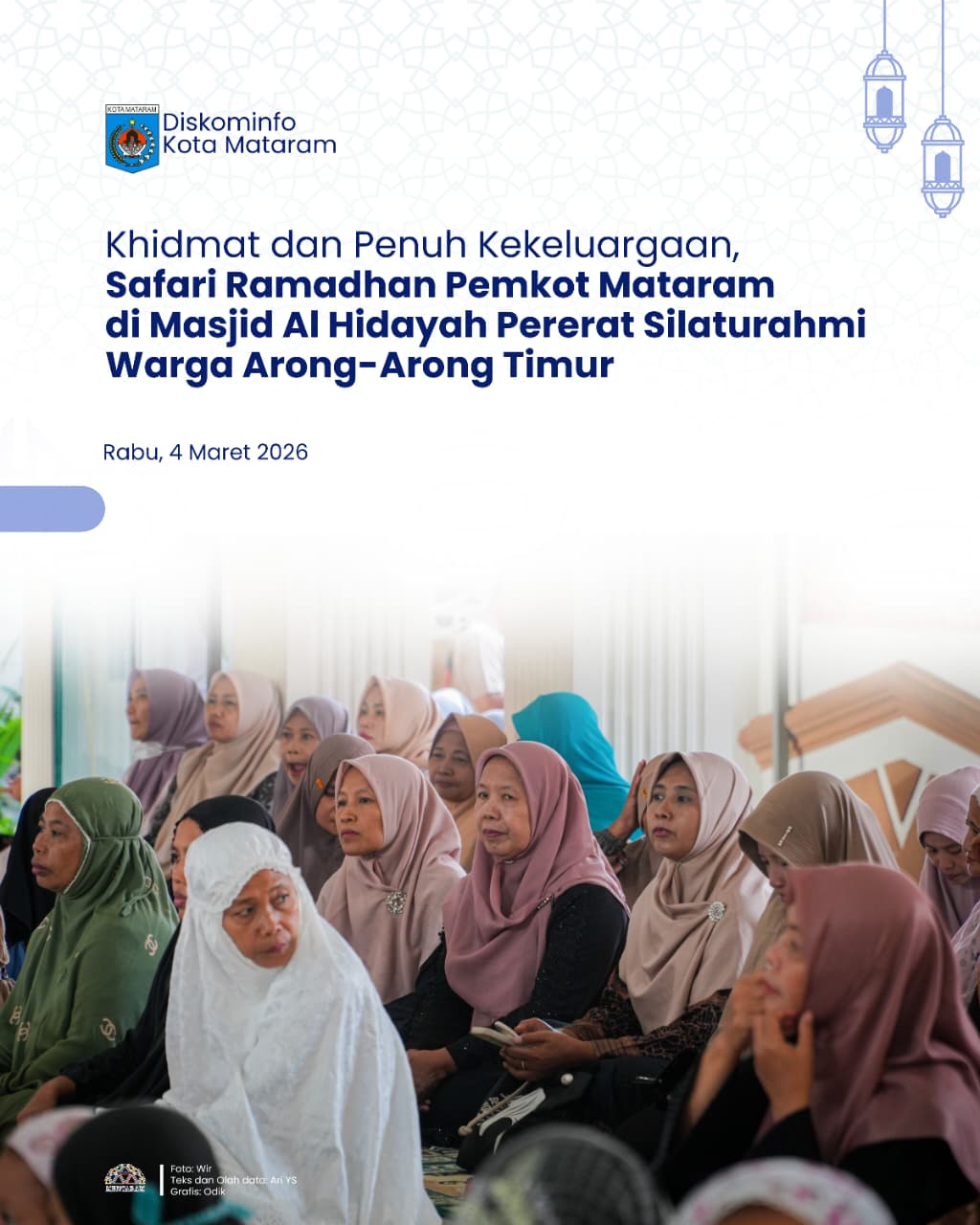 Suasana khidmat dan penuh kekeluargaan mewarnai Safari Ramadhan ketiga Pemerintah Kota Mataram yang digelar di Masjid Al Hidayah, Lingkungan Arong-Arong Timur, Kelurahan Dasan Agung, Kecamatan Selaparang, Rabu (04/03/2026).