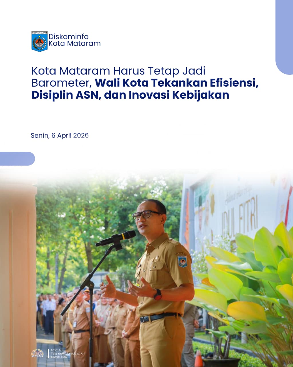 Menurutnya, langkah-langkah yang diambil Pemerintah Kota Mataram harus mampu menjawab tantangan zaman, memperkuat kinerja birokrasi, serta menjaga kualitas pelayanan publik agar tetap optimal di tengah berbagai dinamika yang ada.