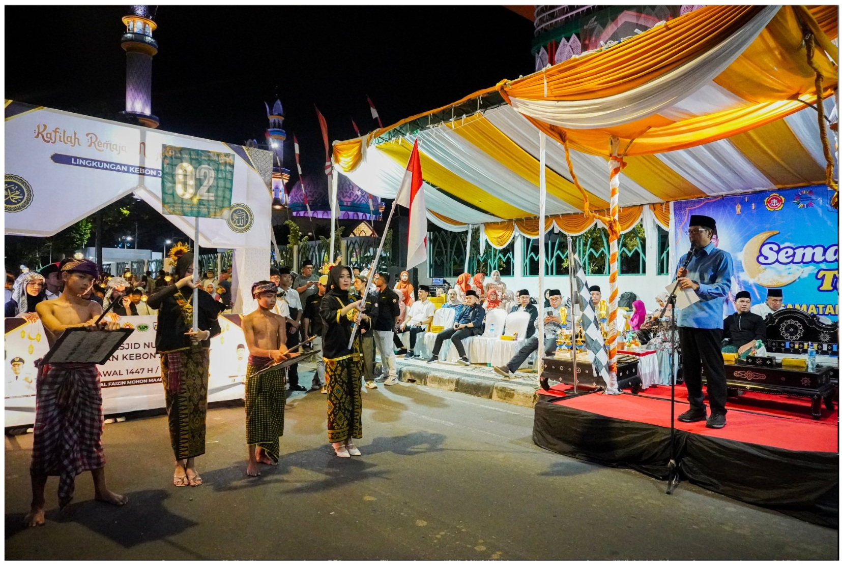 Kegiatan ini menjadi salah satu titik paling semarak, dengan padatnya peserta kafilah yang berbaris rapi sepanjang rute, menciptakan lautan manusia yang bergemuruh oleh lantunan takbir.
