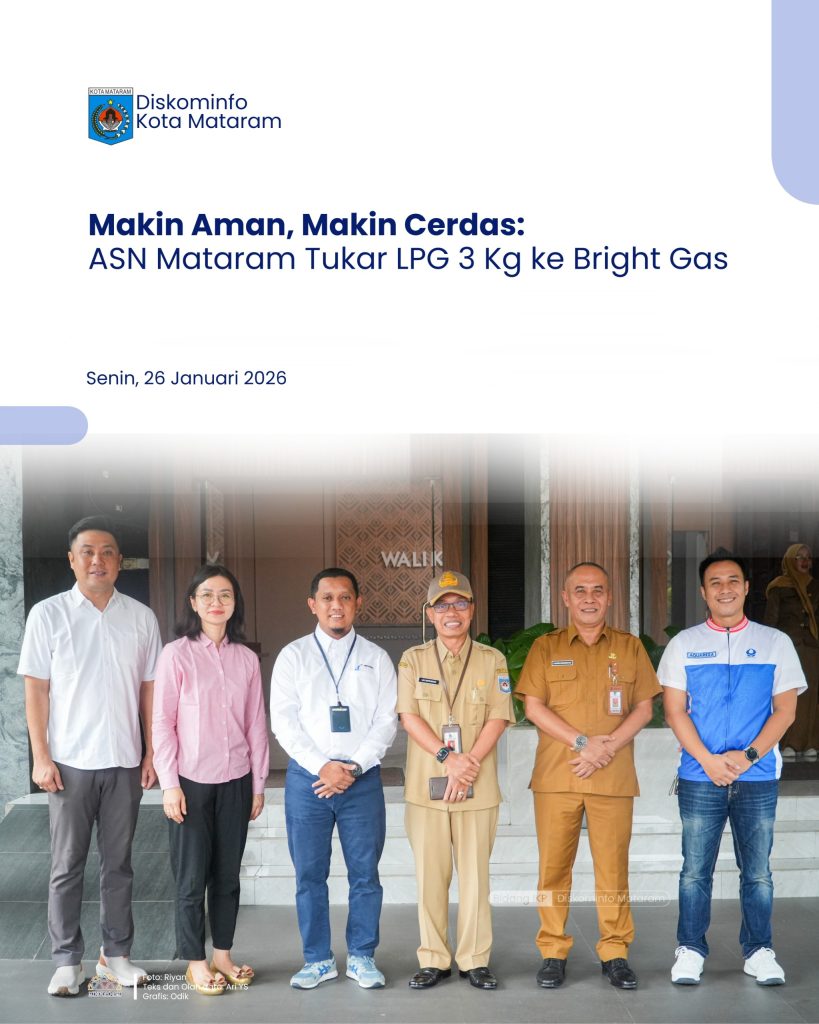 Sebagai bentuk komitmen dalam memastikan hak masyarakat kurang mampu terhadap pemanfaatan LPG subsidi 3 kilogram, Pemerintah Kota Mataram bekerja sama dengan Pertamina Patra Niaga Wilayah Pulau Lombok menggelar kegiatan penukaran dua tabung LPG subsidi 3 kilogram dengan satu tabung Bright Gas 5,5 kilogram, khusus bagi Aparatur Sipil Negara (ASN) Kota Mataram. Kegiatan yang mengusung tagline “Makin Aman, Makin Cerdas” ini dilaksanakan di Sangkareang, Kota Mataram, pada Senin (26/01/2026).