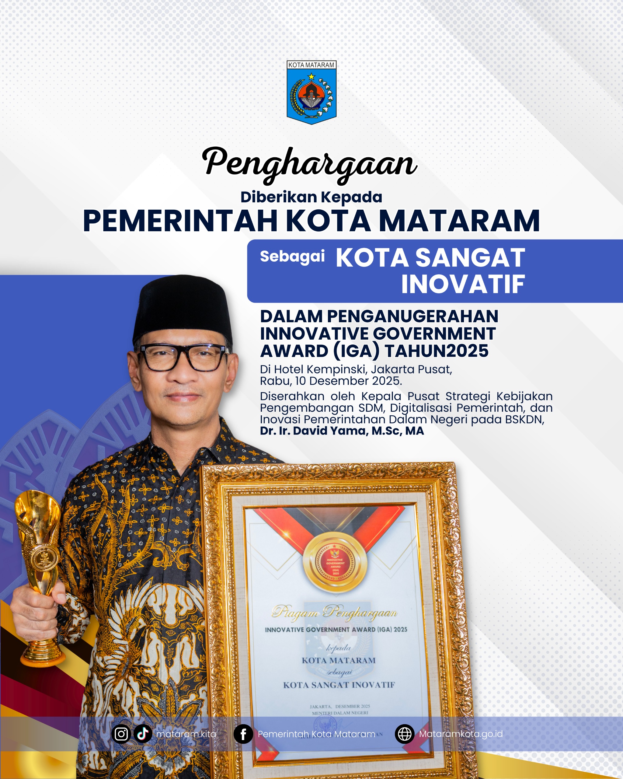 –Mataram kembali Raih IGA Award 2025 Klaster Kota Sangat Inovatif