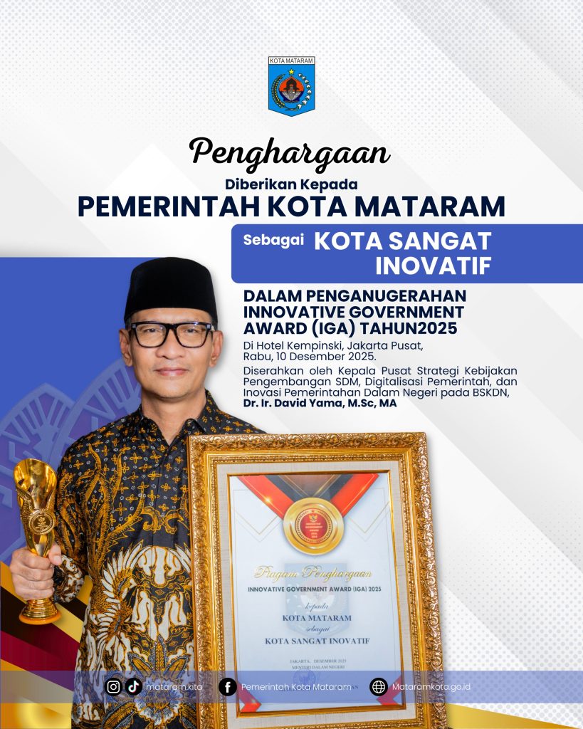 Prestasi ini kembali menjadi bukti komitmen kuat Pemerintah Kota Mataram dalam mengembangkan inovasi daerah, baik di bidang pelayanan publik, tata kelola pemerintahan, maupun penguatan ekonomi masyarakat. Segala kendala dan keterbatasan; melahirkan inspirasi untuk lahirnya inovasi demi inovasi. Melalui kolaborasi lintas sektor dan pemanfaatan teknologi, berbagai program inovatif berhasil dihadirkan dan memberikan dampak nyata bagi masyarakat.