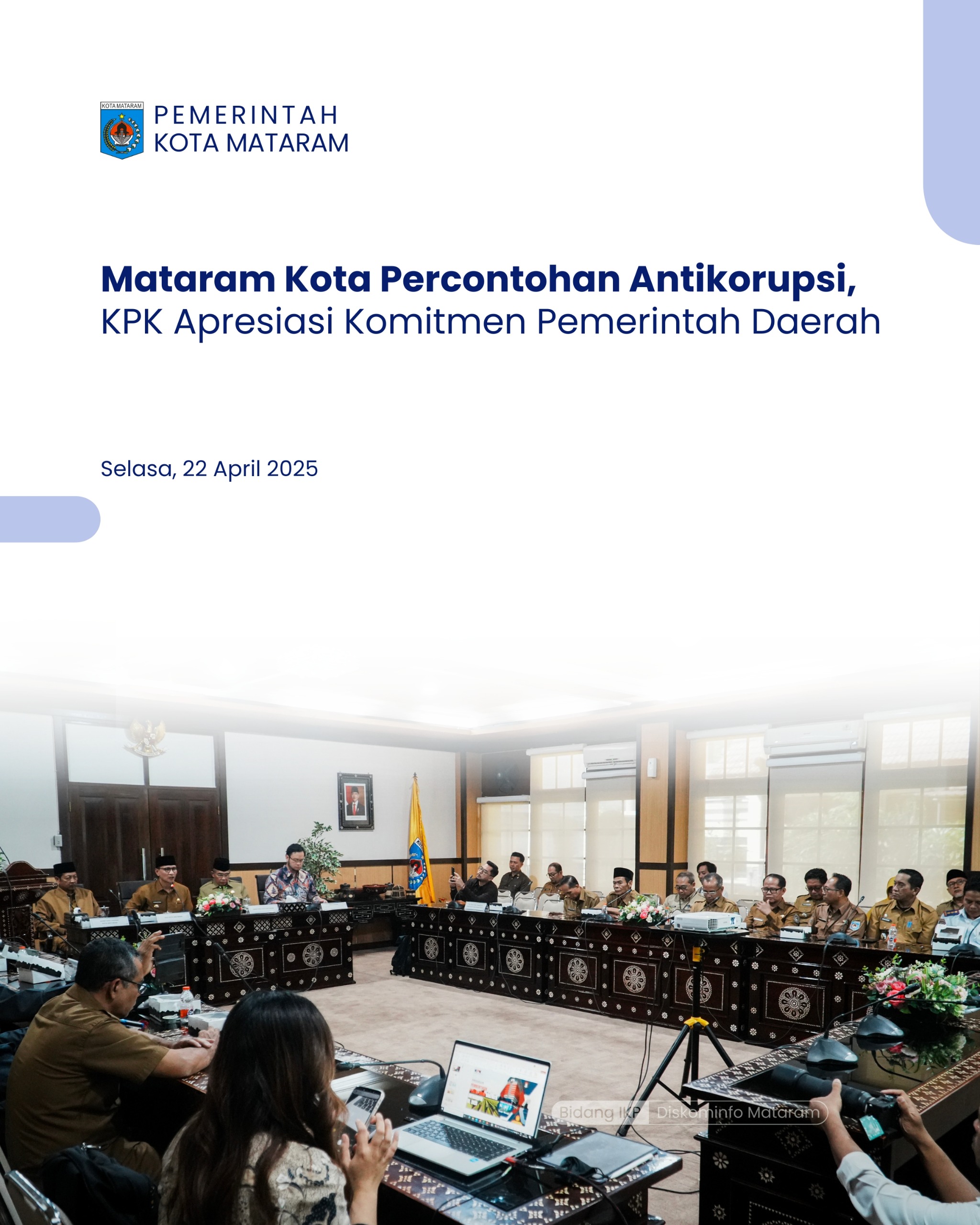 Penetapan sebagai kota percontohan antikorupsi diharapkan dapat mendorong lahirnya lebih banyak inovasi pelayanan publik yang transparan, serta memperkuat kepercayaan masyarakat terhadap pemerintahan daerah. KPK menegaskan, keberhasilan Mataram bisa menjadi model bagi kota-kota lain di Indonesia dalam membangun sistem pemerintahan yang bebas dari praktik korupsi.* (TK-Diskominfo)