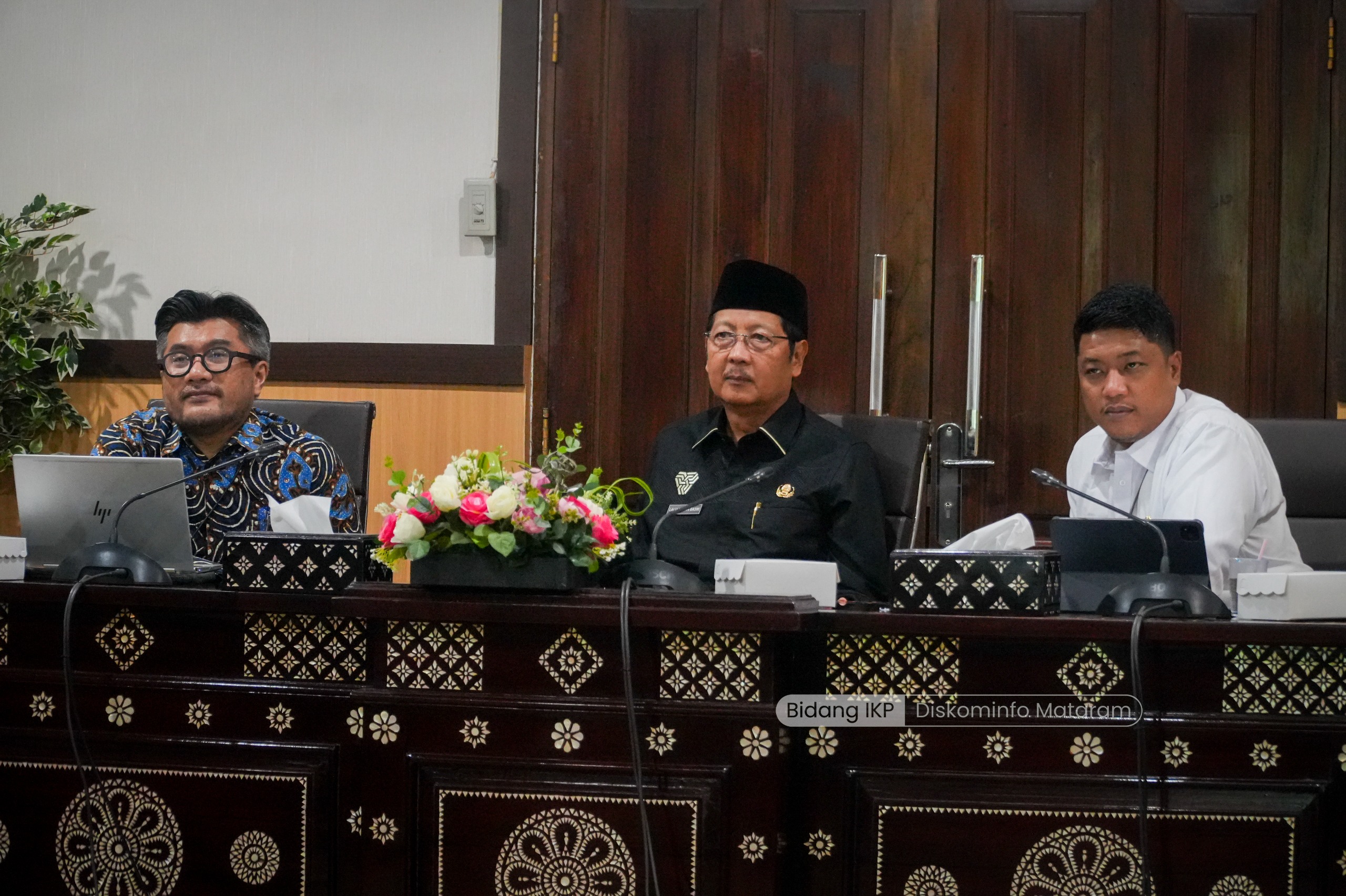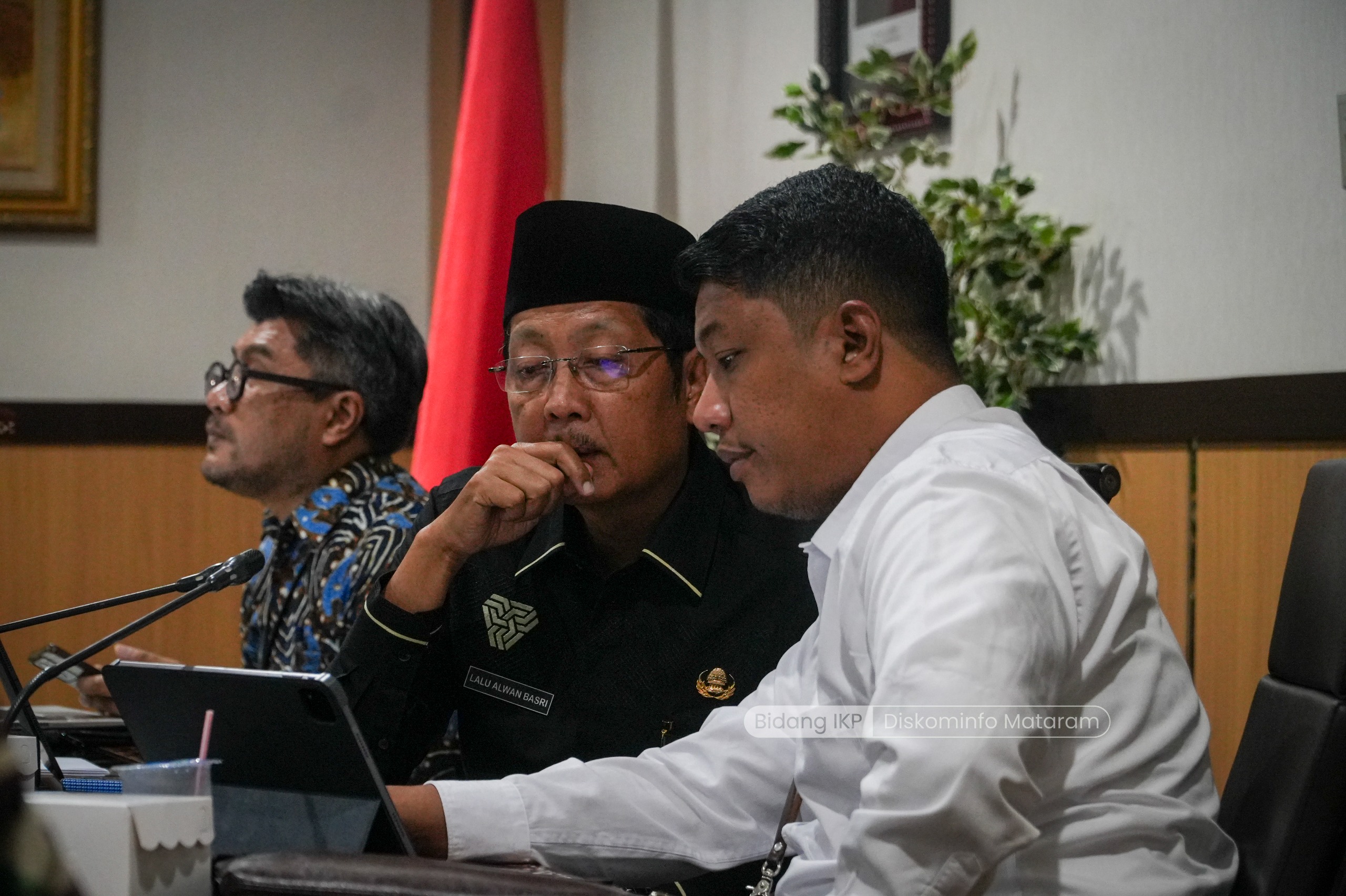 Sekretaris Daerah (Sekda) Kota Mataram H Lalu Alwan Basri bersama Kepala Badan Pusat Statistik (BPS) Kota Mataram Mohammad Reza Nugraha, Deputi Kepala Perwakilan Bank Indonesia (BI) NTB Andhi Wahyu Riyadno, serta sejumlah pimpinan Organisasi Perangkat Daerah (OPD) yang mengikuti rapat koordinasi (rakor) di Ruang Kenari Kantor Walikota Mataram, mendengarkan secara seksama arahan Mendagri tersebut mengenai perkembangan situasi terkini di Tanah Air, sekaligus langkah pengendalian inflasi tahun 2025.