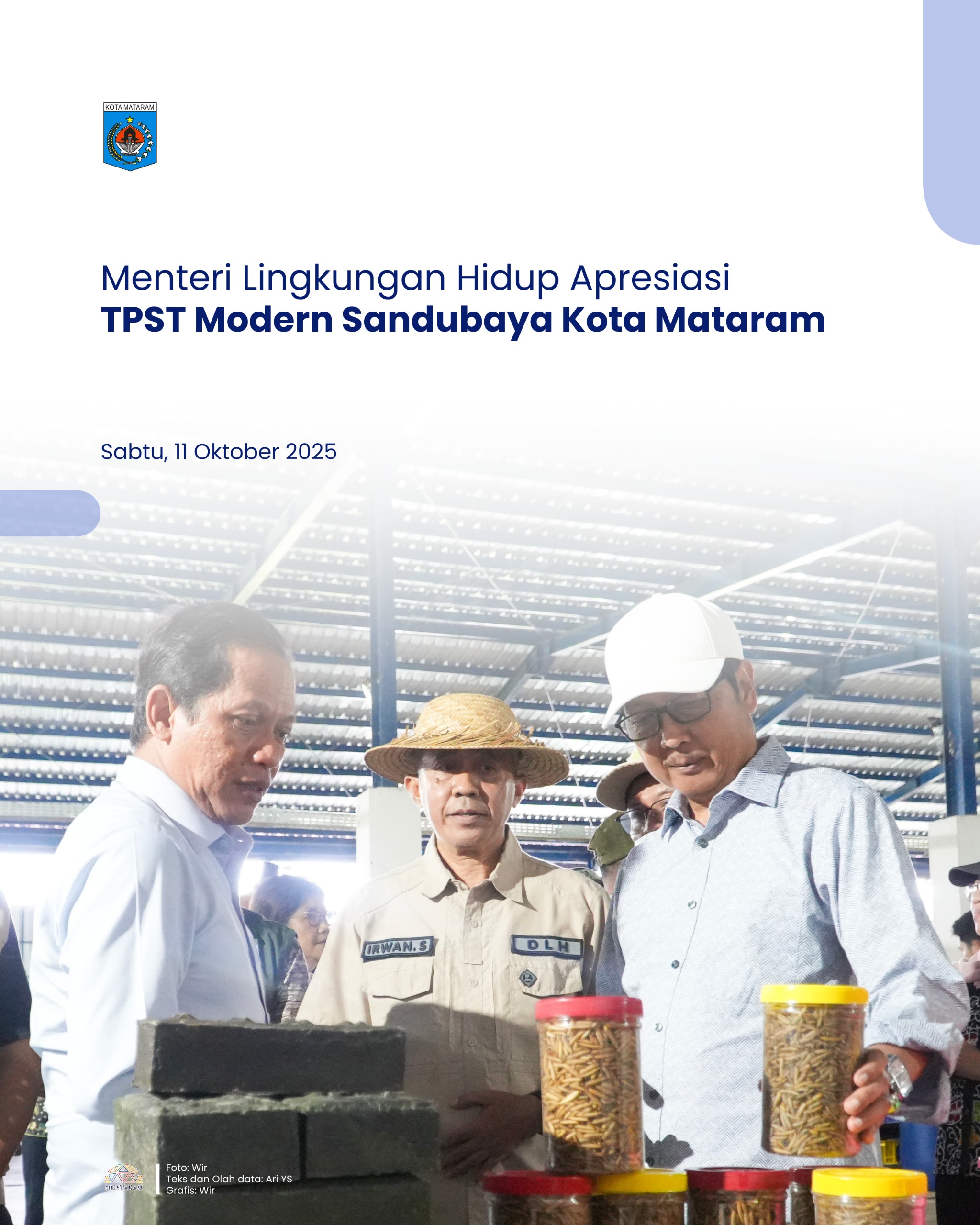 Proses pengelolaan sampah di Tempat Pengolahan Sampah Terpadu (TPST) Modern Sandubaya, Kota Mataram, mendapat apresiasi dari Menteri Lingkungan Hidup Republik Indonesia, Dr. Hanif Faisol Nurofiq, yang melakukan kunjungan kerja ke lokasi tersebut, Sabtu (11/10/2025). Kunjungan itu turut didampingi oleh Sekretaris Daerah (Sekda) Kota Mataram, H. L. Alwan Basri, Sekretaris Dinas Lingkungan Hidup (DLH) Kota Mataram, Irwansyah, serta Kepala Bidang (Kabid) Persampahan DLH, Vidi Partisan.