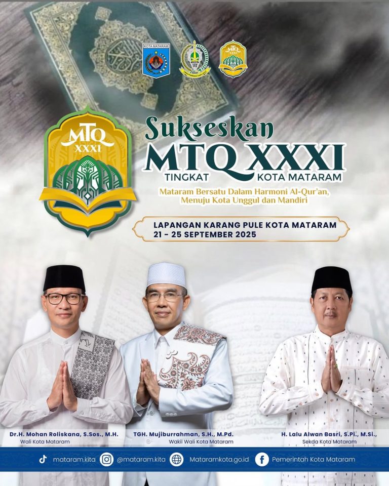MTQ XXXI Tingkat Kota Mataram hadir kembali membawa cahaya Al-Qur’an ke tengah-tengah masyarakat! Dengan tema “Mataram Bersatu dalam Harmoni Al-Qur’an, Menuju Kota…