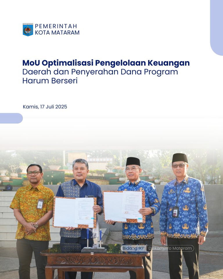 MoU Optimalisasi Pengelolaan Keuangan Daerah dan Penyerahan Dana Program Harum berseri Mataram – Sebagai langkah strategis dalam memperkuat sistem pengelolaan keuangan daerah…