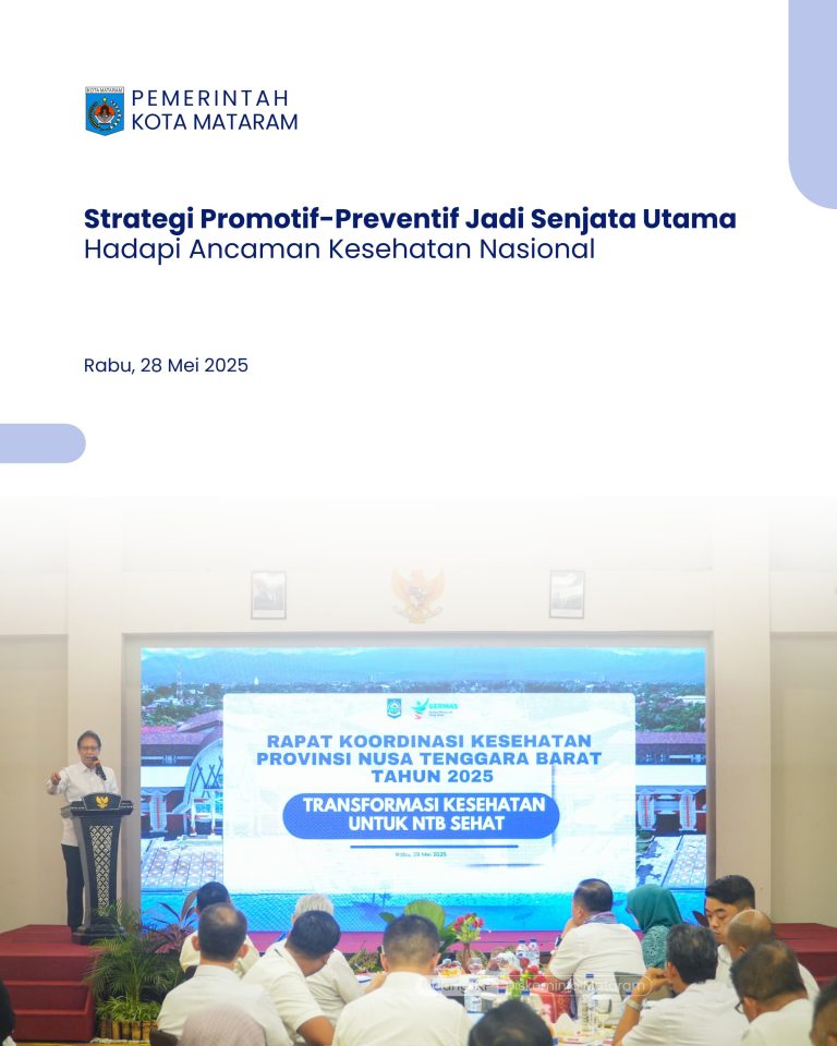 Strategi Promotif-Preventif Jadi Senjata Utama Hadapi Ancaman Kesehatan Nasional Lombok, 28 Mei 2025 – Wakil Wali Kota Mataram, TGH Mujiburrahman, menghadiri Rapat…