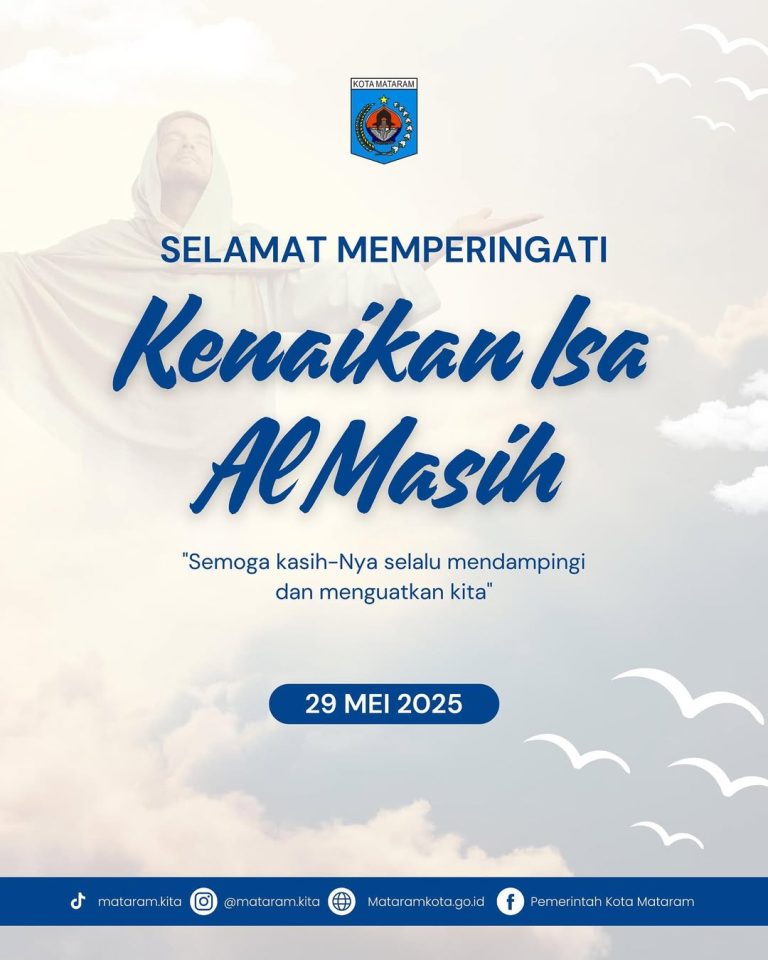 Pemerintah Kota Mataram mengucapkan Selamat Memperingati Kenaikan Isa Almasih dan Jumat Agung bagi seluruh umat Kristiani. Semoga peringatan ini membawa kedamaian, cinta…
