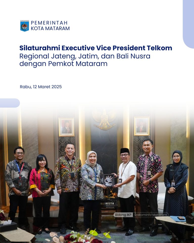 Silaturahmi Executive Vice President Telkom Regional Jateng, Jatim, dan Bali Nusra dengan Pemkot Mataram Mataram- Dalam rangka memperkuat kerjasama dan sinergi dalam…