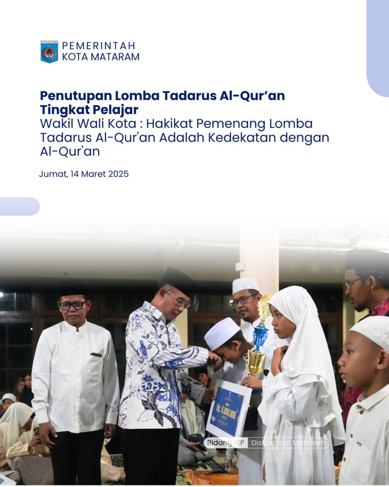 Penutupan Lomba Tadarus Al-Qur’an Tingkat Pelajar Wakil Wali Kota : Hakikat Pemenang Lomba Tadarus Al-Qur’an Adalah Kedekatan dengan Al-Qur’an Mataram – Wakil…