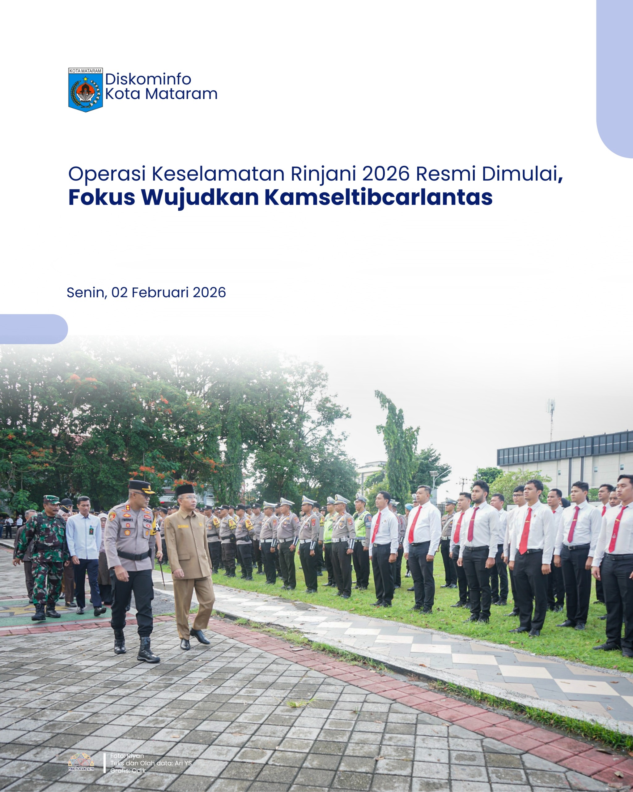Kepolisian Resor Kota (Polresta) Mataram menggelar Apel Gelar Pasukan Operasi Keselamatan Rinjani Tahun 2026 yang dipimpin oleh Wakil Kepala Kepolisian Resor Kota (Wakapolresta) Mataram, AKBP I Wayan Sudarmanta. Kegiatan ini turut dihadiri oleh Wakil Wali Kota Mataram, TGH Mujiburrahman, bersama jajaran unsur Forum Koordinasi Pimpinan Daerah (Forkopimda) Kota Mataram. Apel berlangsung di Lapangan Sangkareang, Kota Mataram, pada Senin (02/02/2026).