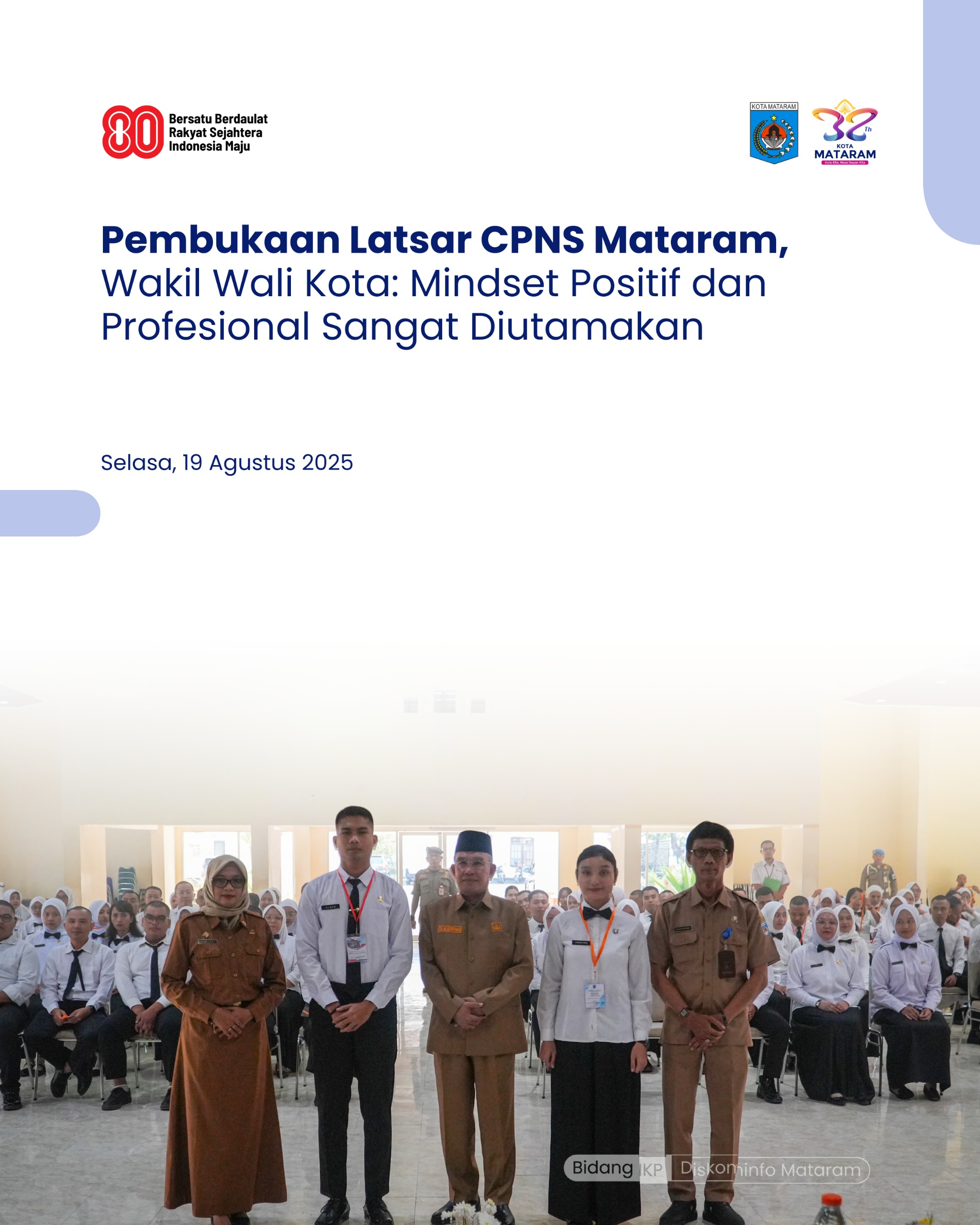 Mataram – Seorang Aparatur Sipil Negara (ASN) atau Pegawai Negeri Sipil (PNS) dalam melaksanakan tugas harus menjunjung tinggi profesionalitas, disiplin, dan fokus pada tugas serta fungsinya. Hal tersebut disampaikan Wakil Wali Kota Mataram, TGH Mujiburrahman, saat membuka Pelatihan Dasar (Latsar) Calon Pegawai Negeri Sipil (CPNS) Pemerintah Kota Mataram Pola Kerja Sama dengan Badan Pengembangan Sumber Daya Manusia Daerah (BPSDM) Provinsi NTB, yang berlangsung di Aula Rinjani Kantor BPSDM Provinsi NTB, pada Selasa (19/08/2025).