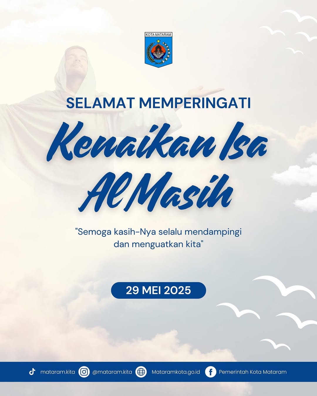 Pemerintah Kota Mataram mengucapkan Selamat Memperingati Kenaikan Isa Almasih dan Jumat Agung bagi seluruh umat Kristiani.
