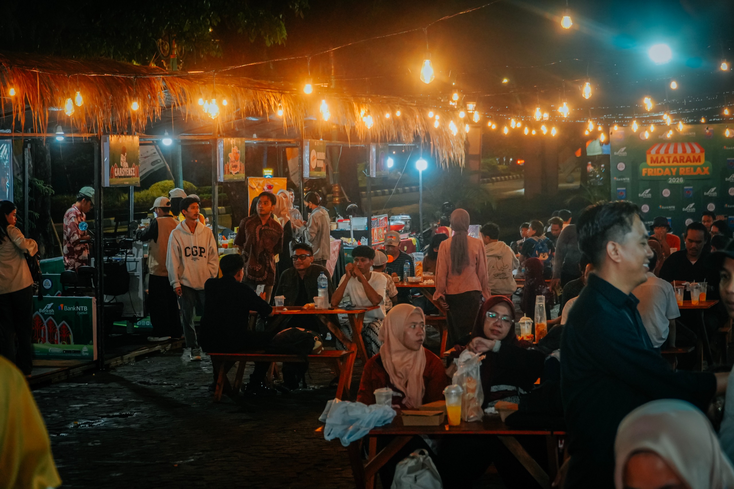 Mataram — Temaram lampu di Teras Udayana,  pada Jumat (24/04/2026), menghadirkan suasana yang hangat dan hidup. Musik mengalun, anak-anak berlarian, dan masyarakat dari berbagai kalangan larut dalam kebersamaan. Di ruang terbuka itu, Friday Relax 2026 bukan sekadar hiburan, tetapi menjadi ruang pertemuan antara harapan, interaksi sosial, dan geliat ekonomi warga.