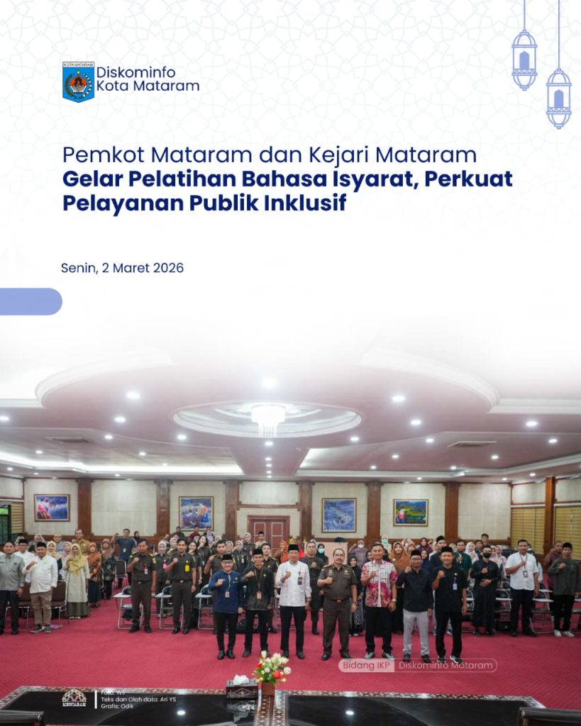 Pemerintah Kota Mataram menggelar Pelatihan Bahasa Isyarat Tingkat Dasar dan Lanjutan bekerja sama dengan Kejaksaan Negeri Mataram. Kegiatan tersebut secara resmi dibuka oleh Sekretaris Daerah (Sekda) Kota Mataram, H. L. Alwan Basri, dan berlangsung di Aula Lantai III Kantor Wali Kota Mataram pada Senin (02/03/2025).