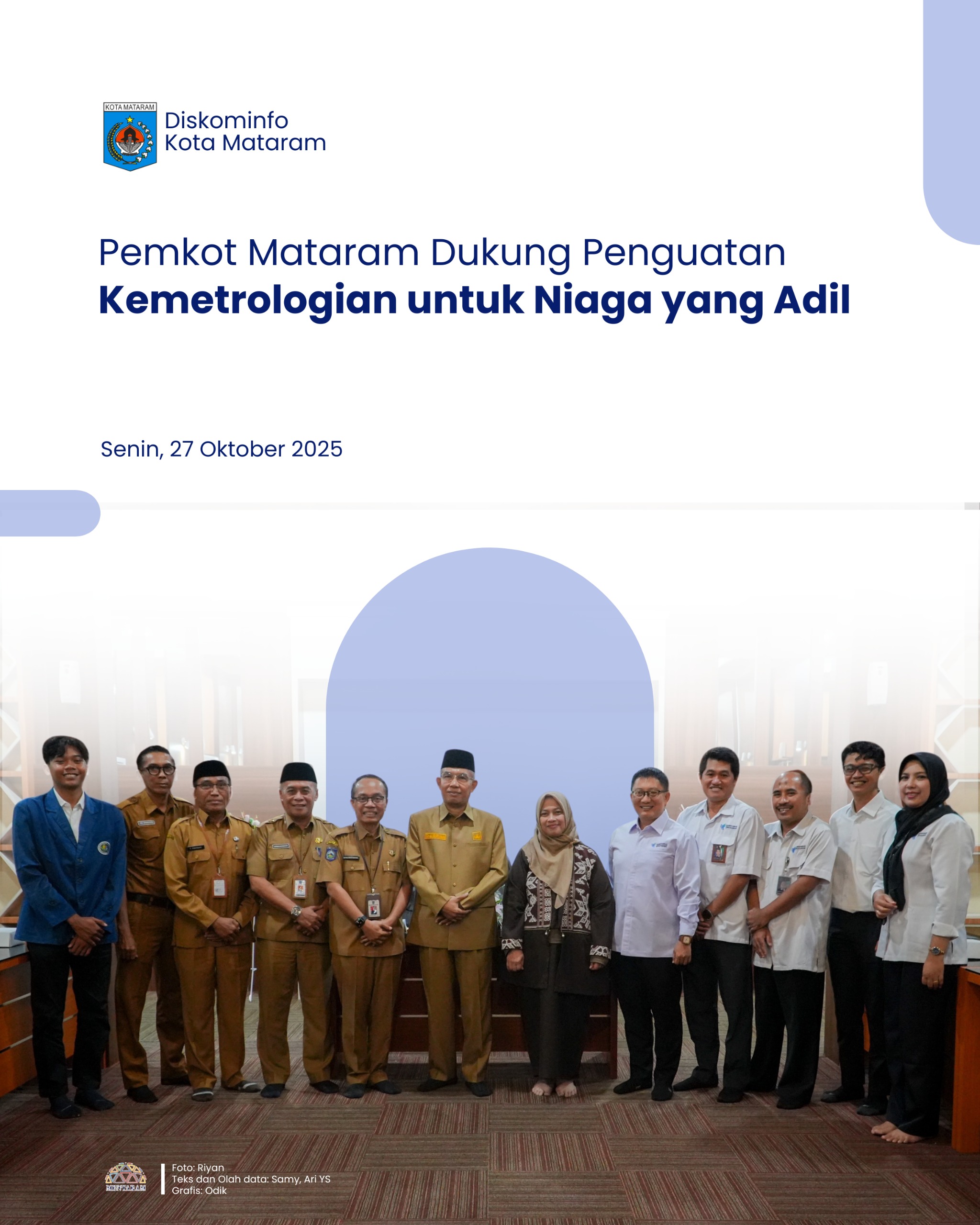 “Di balik transaksi yang adil, perdagangan yang sehat, dan kepercayaan konsumen terhadap pasar, terdapat peran penting kemetrologian yang menjamin ketepatan alat ukur dan transparansi niaga,” ujarnya saat menerima kunjungan dan pembahasan kerja sama pengembangan sumber daya manusia di bidang kemetrologian antara Pemerintah Kota Mataram dan Kementerian Perdagangan Republik Indonesia, di Pendopo Margapati, Senin (27/10/2025).