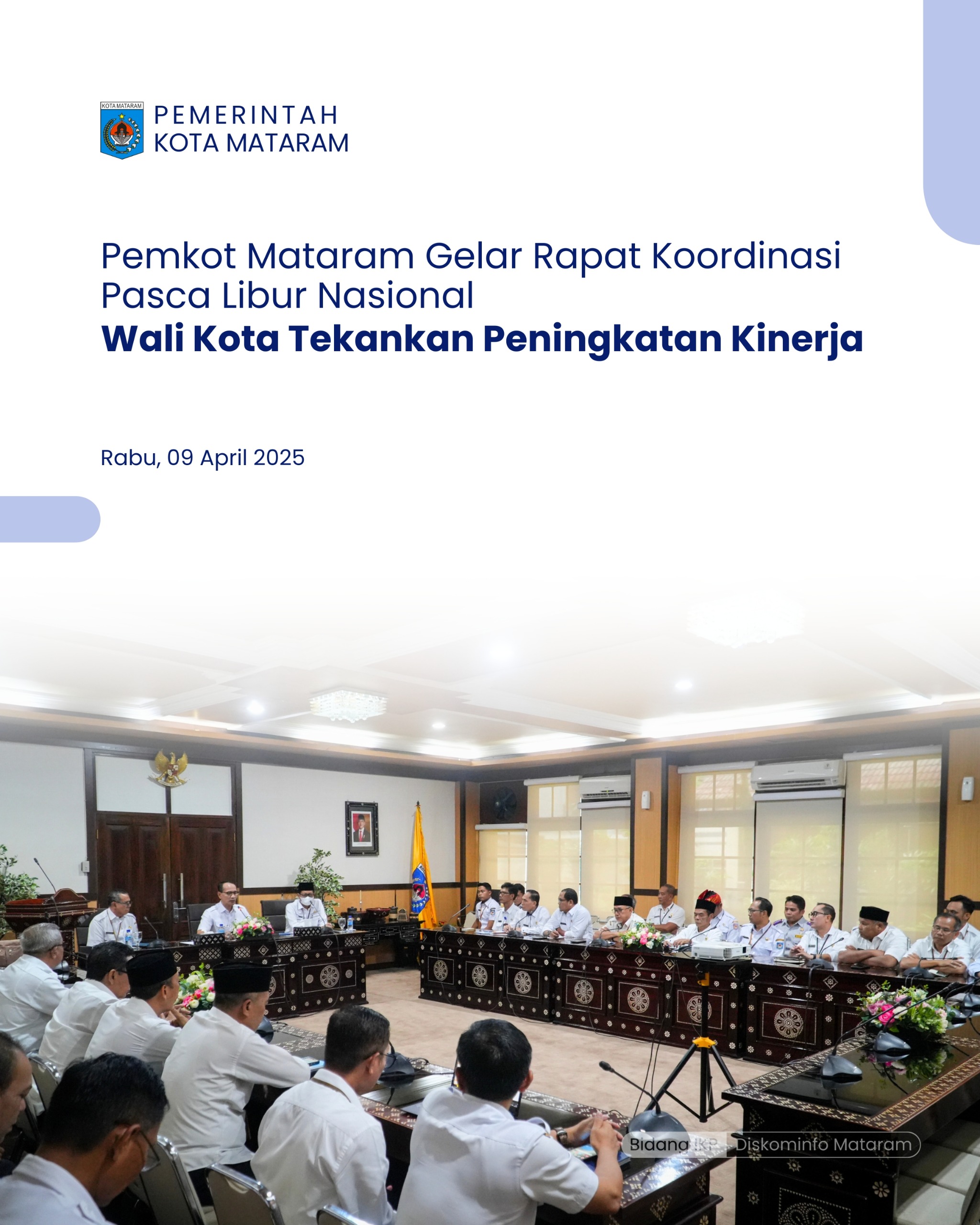 Mataram – Pemerintah Kota Mataram menggelar Rapat Koordinasi bersama seluruh Organisasi Perangkat Daerah (OPD), camat, dan lurah se-Kota Mataram usai libur nasional, bertempat di Ruang Kenari, Kantor Wali Kota Mataram, Rabu (09/04/2025).