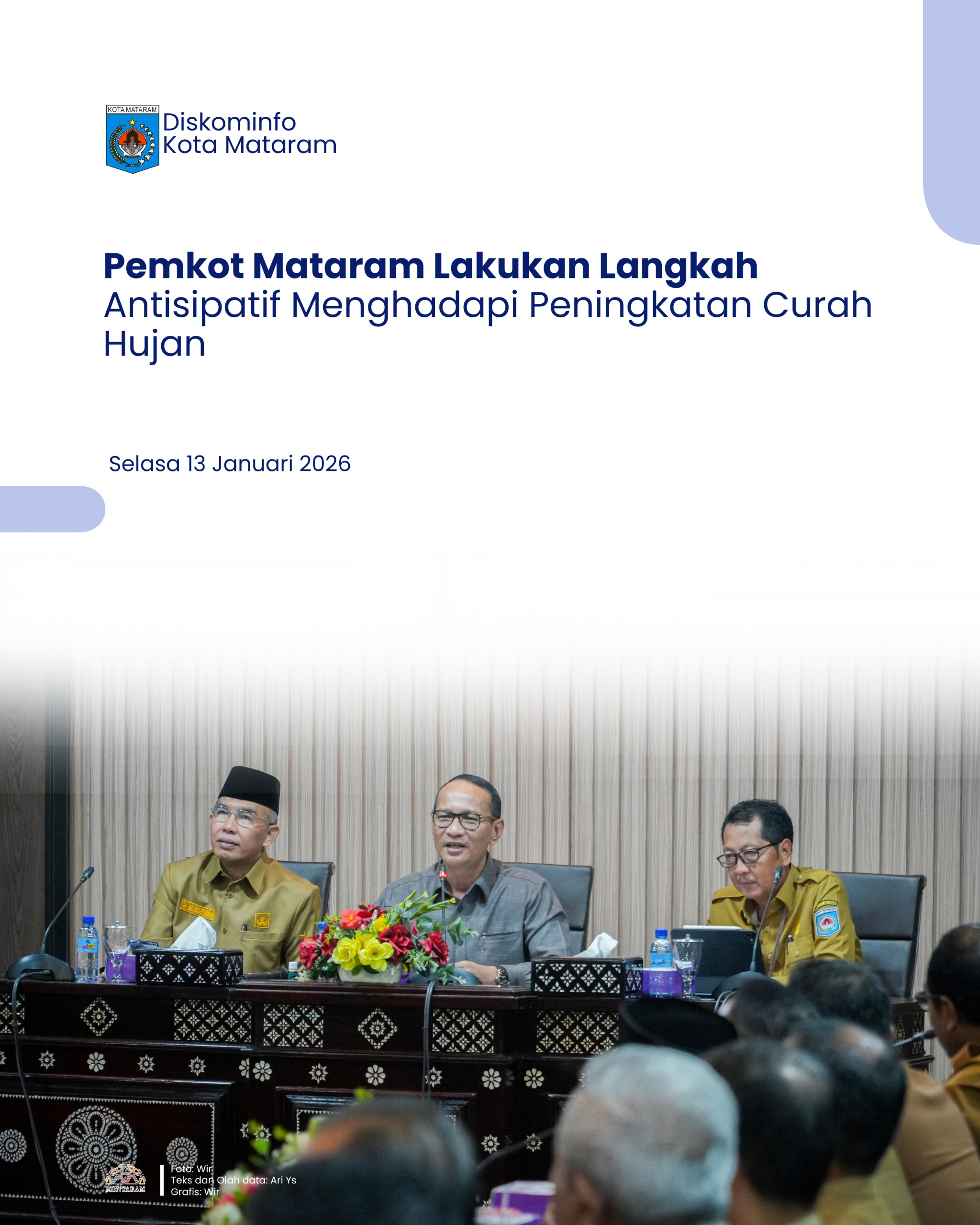 Menyikapi peningkatan curah hujan yang disertai angin kencang di wilayah Provinsi Nusa Tenggara Barat (NTB), khususnya Kota Mataram, Wali Kota Mataram, H. Mohan Roliskana, meminta seluruh jajaran Pemerintah Kota Mataram, terutama satuan tugas (satgas) kebencanaan Kota Mataram, untuk meningkatkan kesiapsiagaan, baik dari sisi posko maupun sumber daya manusia (SDM) dan kekuatan personel (man power).