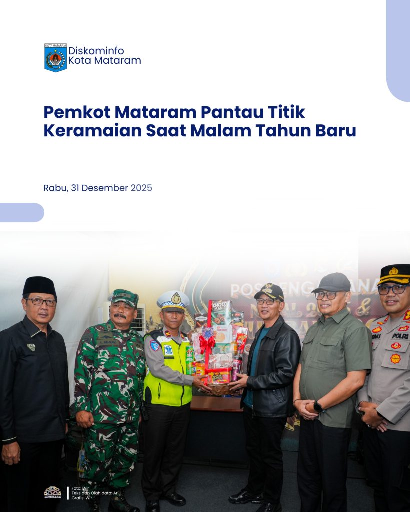Mataram — Meski tanpa perayaan resmi, konsentrasi warga di ruang publik pada malam pergantian tahun tetap menjadi perhatian. Pemerintah Kota Mataram bersama unsur Froum Komunikasi Pimpinan Daerah (Forkopimda) Kota Mataram, melakukan pemantauan di sejumlah titik keramaian guna memastikan keamanan dan ketertiban masyarakat tetap terjaga.