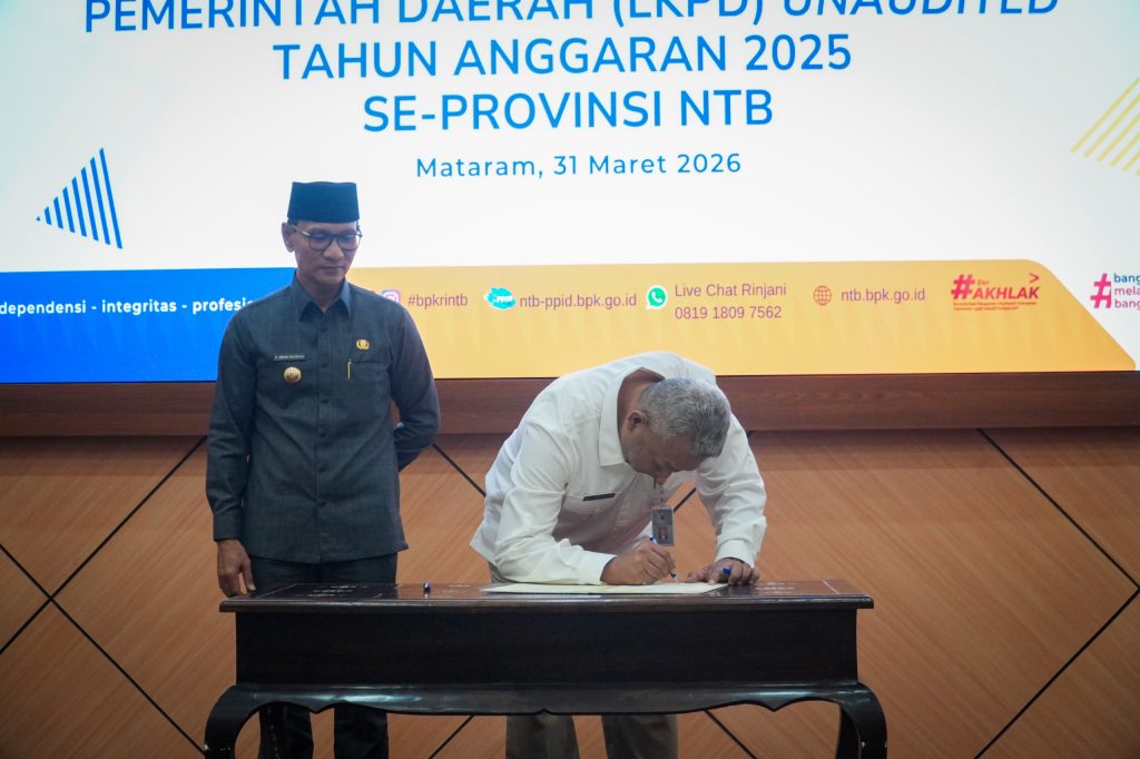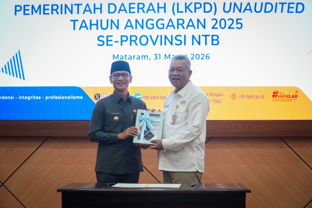 Mataram — Pemerintah Kota Mataram secara resmi menyerahkan Laporan Keuangan Unaudited Tahun Anggaran 2025 kepada Badan Pemeriksa Keuangan (BPK) RI Perwakilan Provinsi Nusa Tenggara Barat, bertempat di Aula Kantor BPK RI Perwakilan Provinsi NTB, Selasa (31/03/2026).
