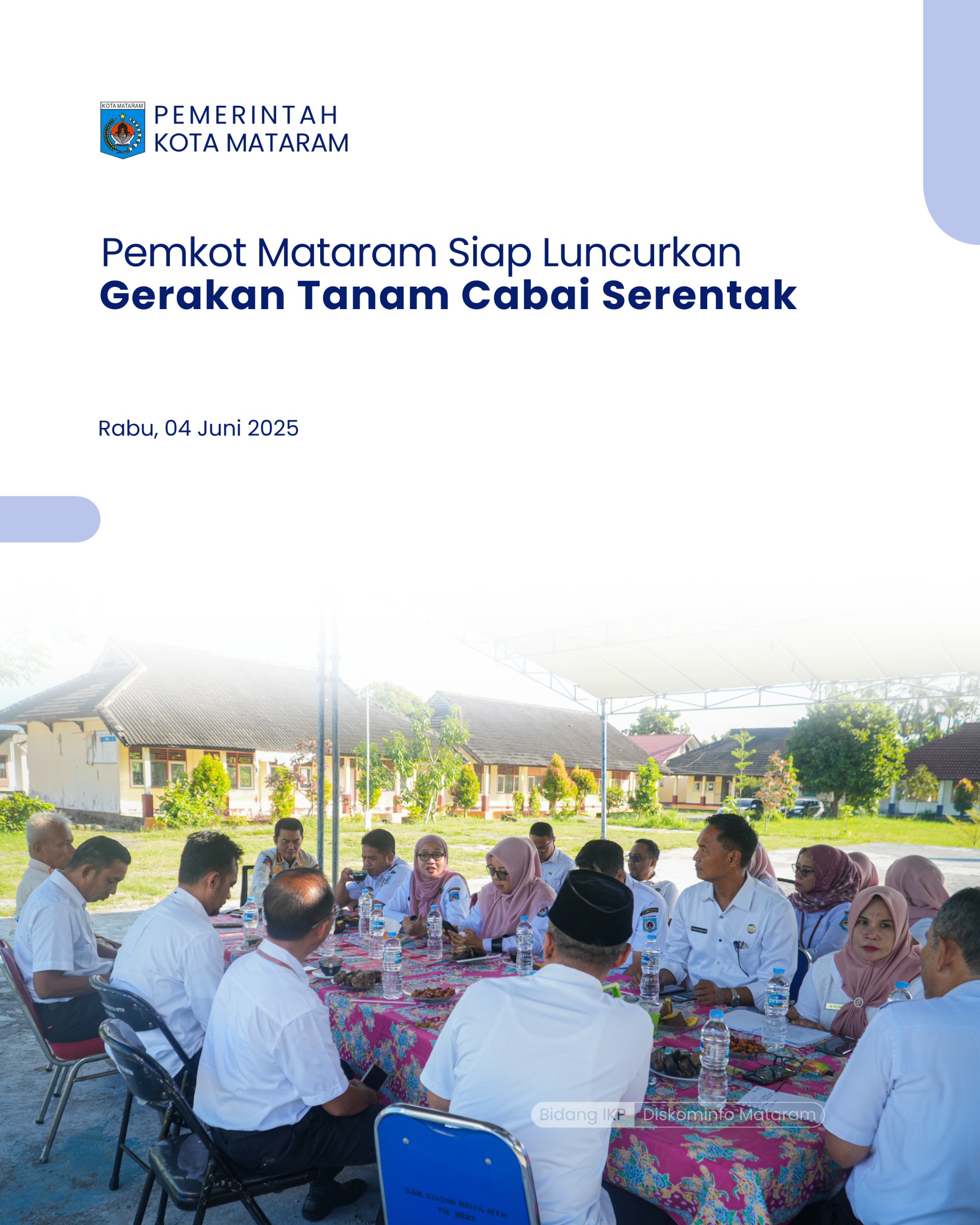 MATARAM – Pemerintah Kota Mataram terus mematangkan persiapan peluncuran Gerakan Tanam Cabai se-Kota Mataram. Rapat evaluasi digelar di SMPN 23 Mataram pada Selasa (04/06/2025), sebagai langkah konsolidasi akhir sebelum pelaksanaan gerakan ini di seluruh kecamatan dan kelurahan.