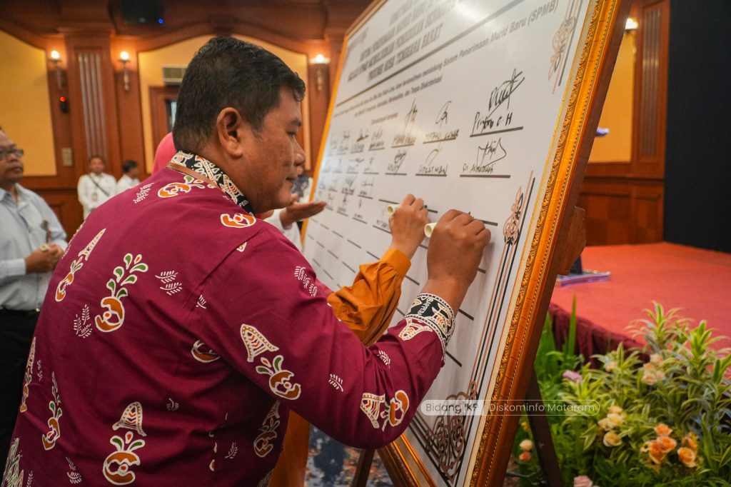 Mataram – Wakil Wali Kota Mataram, TGH. Mujiburrahman, menghadiri kegiatan Koordinasi dan Sosialisasi Sistem Penerimaan Murid Baru (SPMB) Tahun 2025 yang dirangkaikan dengan Penandatanganan Komitmen Bersama Mendukung Pelaksanaan SPMB. Kegiatan tersebut berlangsung di Ballroom Hotel Lombok Raya, Kamis (8/5/2025), dan dihadiri oleh jajaran strategis pendidikan di lingkup Provinsi NTB.