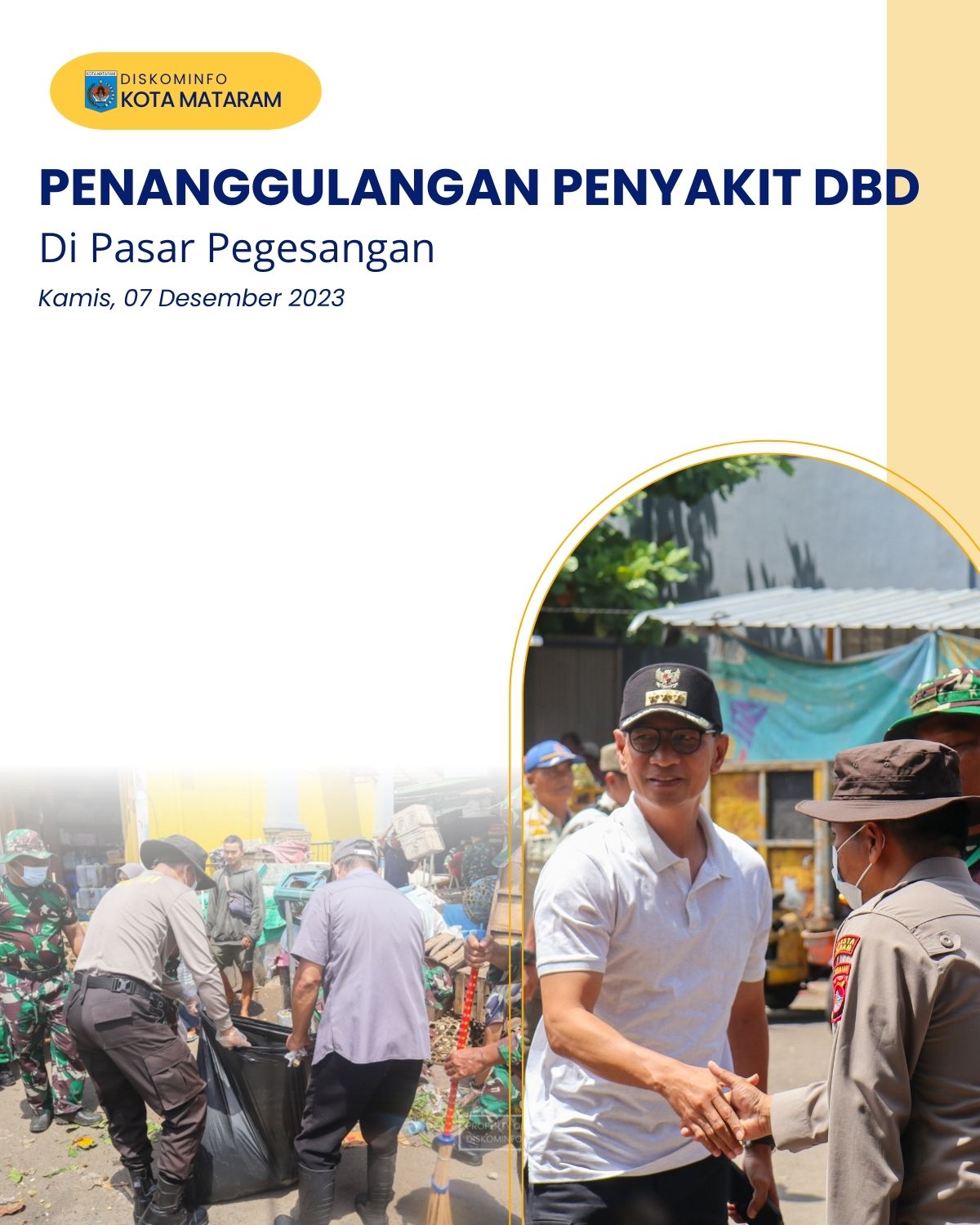 Mataram- musim hujan telah resmi dimulai di Kota Mataram, menciptakan potensi peningkatan risiko penyakit Demam Berdarah (DBD). Dalam upaya pencegahan dan penanggulangan, tim gabungan yang terdiri dari berbagai pihak telah melaksanakan Karya Bakti di Pasar Pegesangan, pada hari Kamis (07/12/2023).