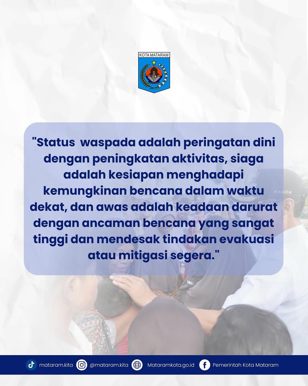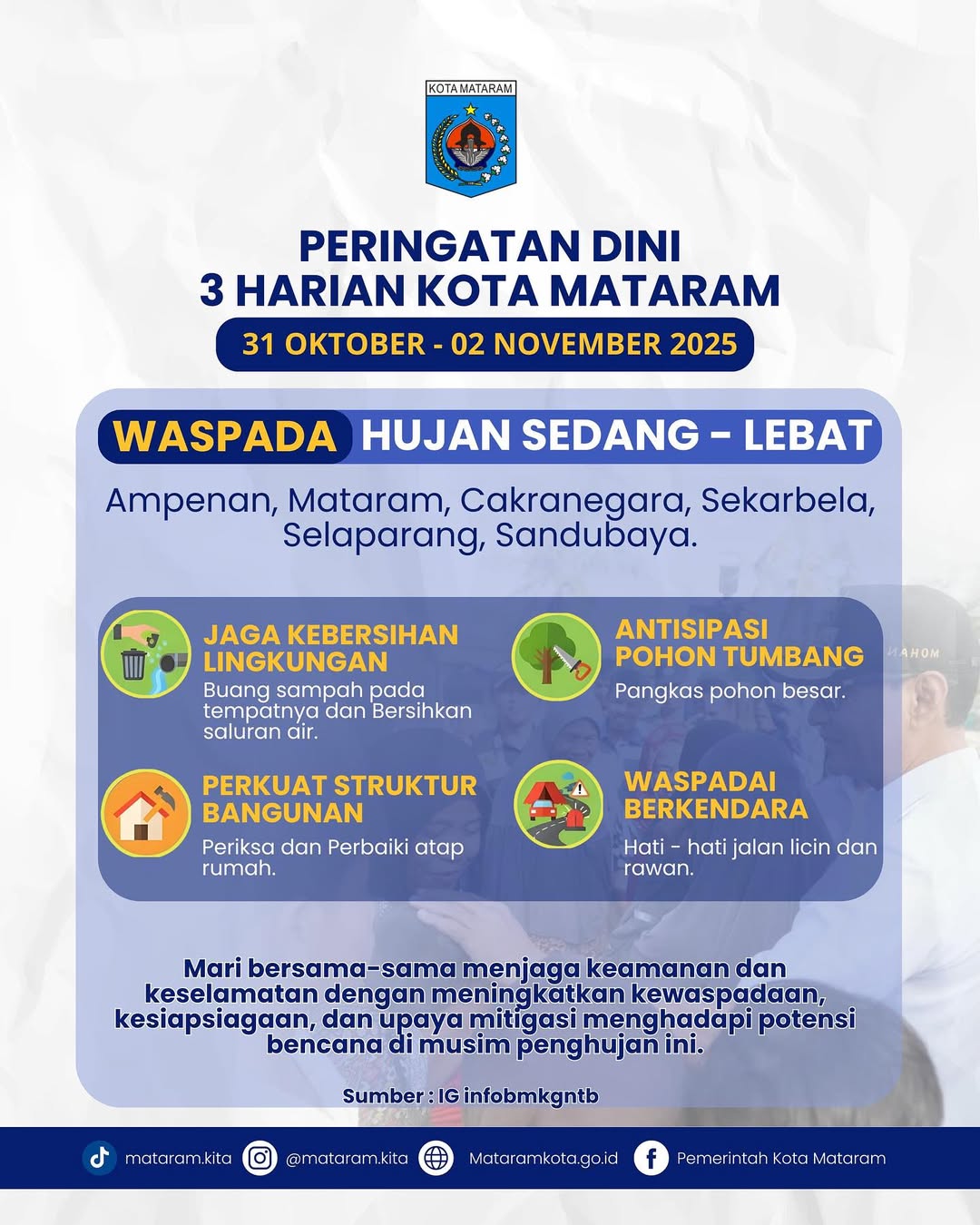 Mari bersama- sama menjaga Keamana dan keselamafan dengan meningkatkan kewaspadaan, kesiapsiagaan dan upaya mitigasi menghadapi potensi bencana dimusim penghujan