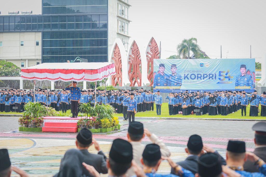 Upacara peringatan Hari Ulang Tahun (HUT) ke-54 Korps Pegawai Republik Indonesia (KORPRI) berlangsung khidmat di Lapangan Sangkareang, Kota Mataram, Senin (01/12/2025). Pada kesempatan tersebut, Wali Kota Mataram, H. Mohan Roliskana, membacakan sambutan Ketua Umum Dewan Pengurus KORPRI Nasional, Prof. Dr. Zudan Arif Fakrulloh, S.H., M.H., yang berisi pesan mendalam tentang pengabdian ASN bagi bangsa dan negara.