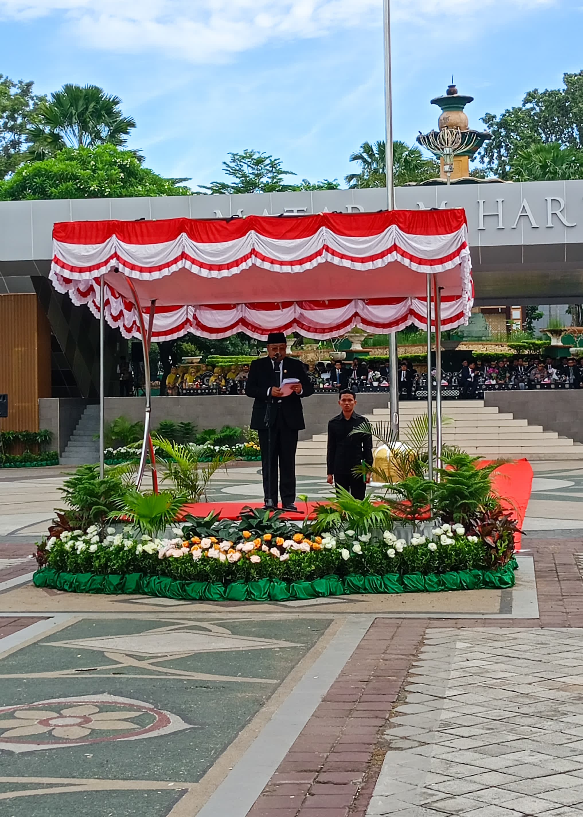 Staf Ahli Bidang Kemasyarakatan dan Sumber Daya Manusia Kota Mataram, Sudirman menghadiri Upacara Hari Amal Bakti (HAB) ke-79 Kementerian Agama Republik Indonesia, yang berlangsung di Lapangan Sangkareang, Kota Mataram. Pada Jum’at (03/12/2024).
