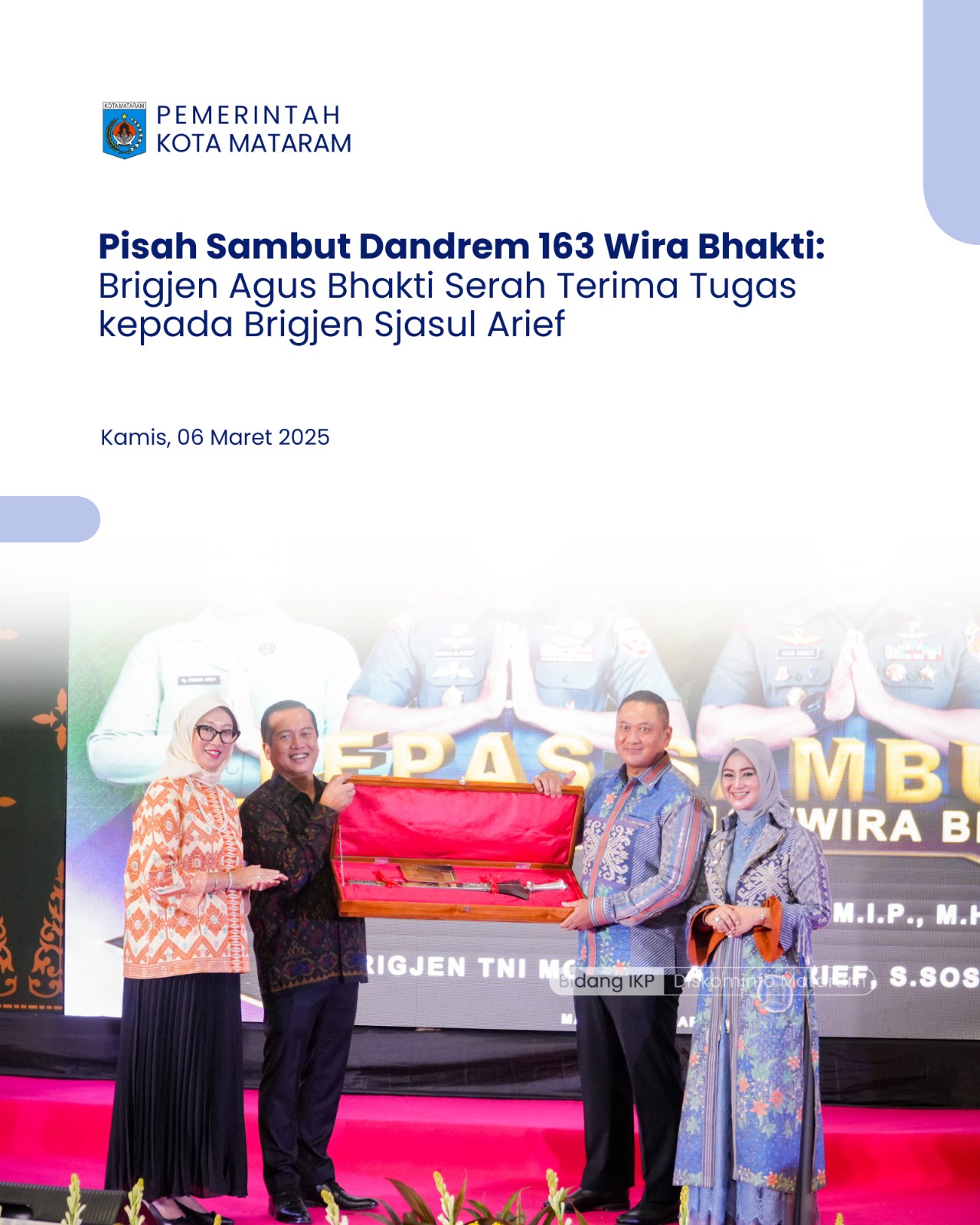 Dalam sambutannya, Gubernur NTB, Lalu Muhammad Iqbal, menyampaikan ucapan terima kasih yang mendalam kepada Brigjen Agus Bhakti atas dedikasi dan pengabdiannya selama menjabat sebagai Dandrem 162/Wira Bhakti selama satu tahun delapan bulan. Gubernur Iqbal juga mengucapkan selamat datang kepada Brigjen Sjasul Arief yang kini mengemban amanah sebagai Dandrem 162/Wira Bhakti di wilayah NTB, dengan harapan pengalaman yang dimiliki Brigjen Sjasul Arief dapat semakin memperkuat tugas dan tanggung jawabnya di wilayah ini.