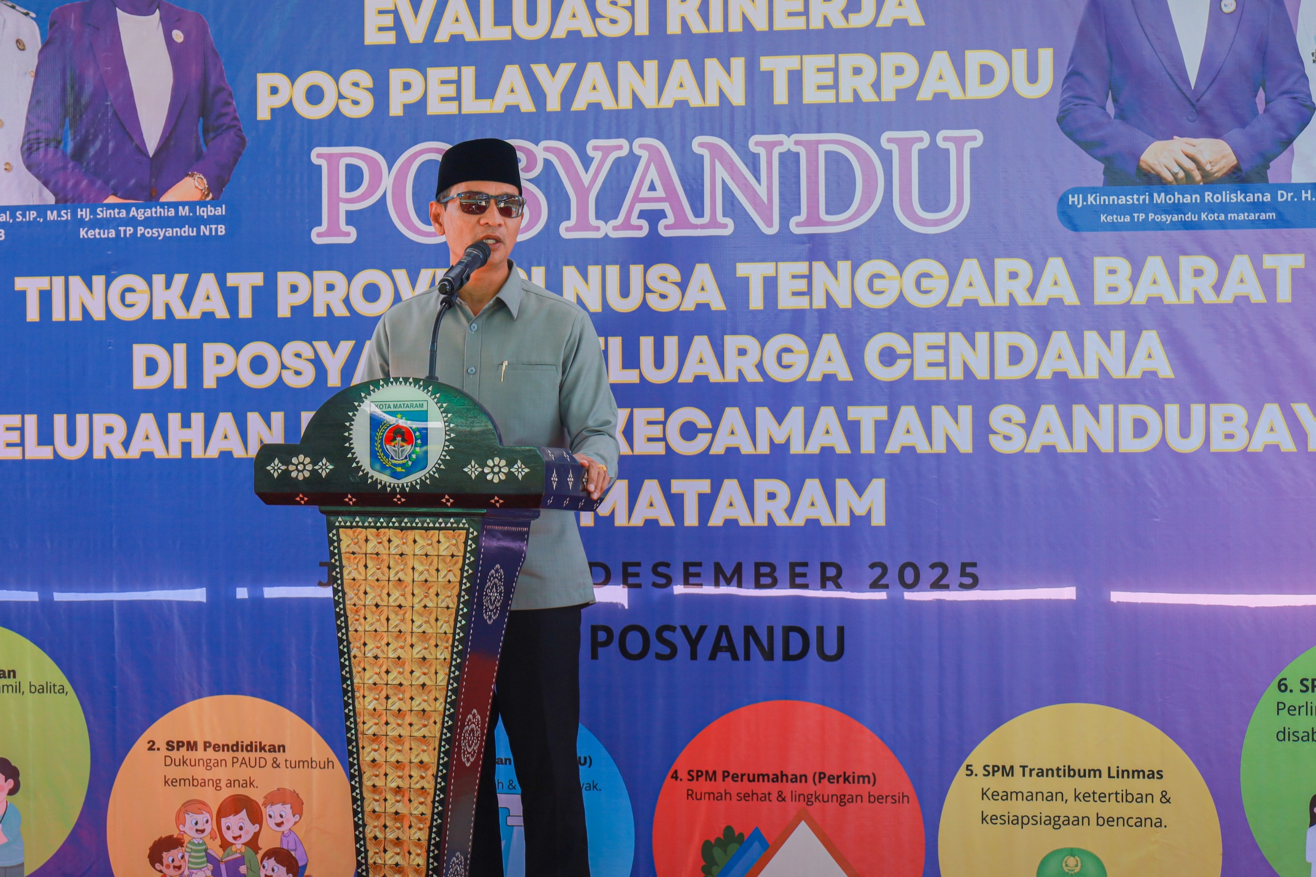 Mataram — Posyandu Keluarga dewasa ini bukan lagi sekadar tempat pelayanan kesehatan balita dan ibu hamil. Perannya telah berkembang menjadi pusat pelayanan kesehatan dan pemberdayaan keluarga lintas siklus hidup, sejalan dengan arah kebijakan Integrasi Layanan Primer (ILP). Hal tersebut ditegaskan Wali Kota Mataram, H. Mohan Roliskana, dalam sambutannya pada kegiatan Penilaian dan Evaluasi Lomba Posyandu Tingkat Provinsi NTB di Posyandu Cendana, Lingkungan Babakan Permai, Kelurahan Babakan, Kecamatan Sandubaya, Jumat (05/12/2025).