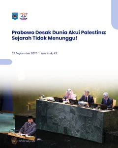 New York — Presiden RI Prabowo Subianto menyatakan sikap tegas Indonesia untuk mendukung penyelesaian damai konflik Palestina–Israel. Ia menyerukan pengakuan segera terhadap negara Palestina dan penghentian tragedi kemanusiaan yang masih berlangsung di Gaza.