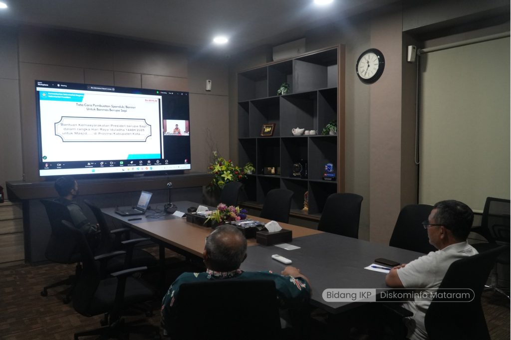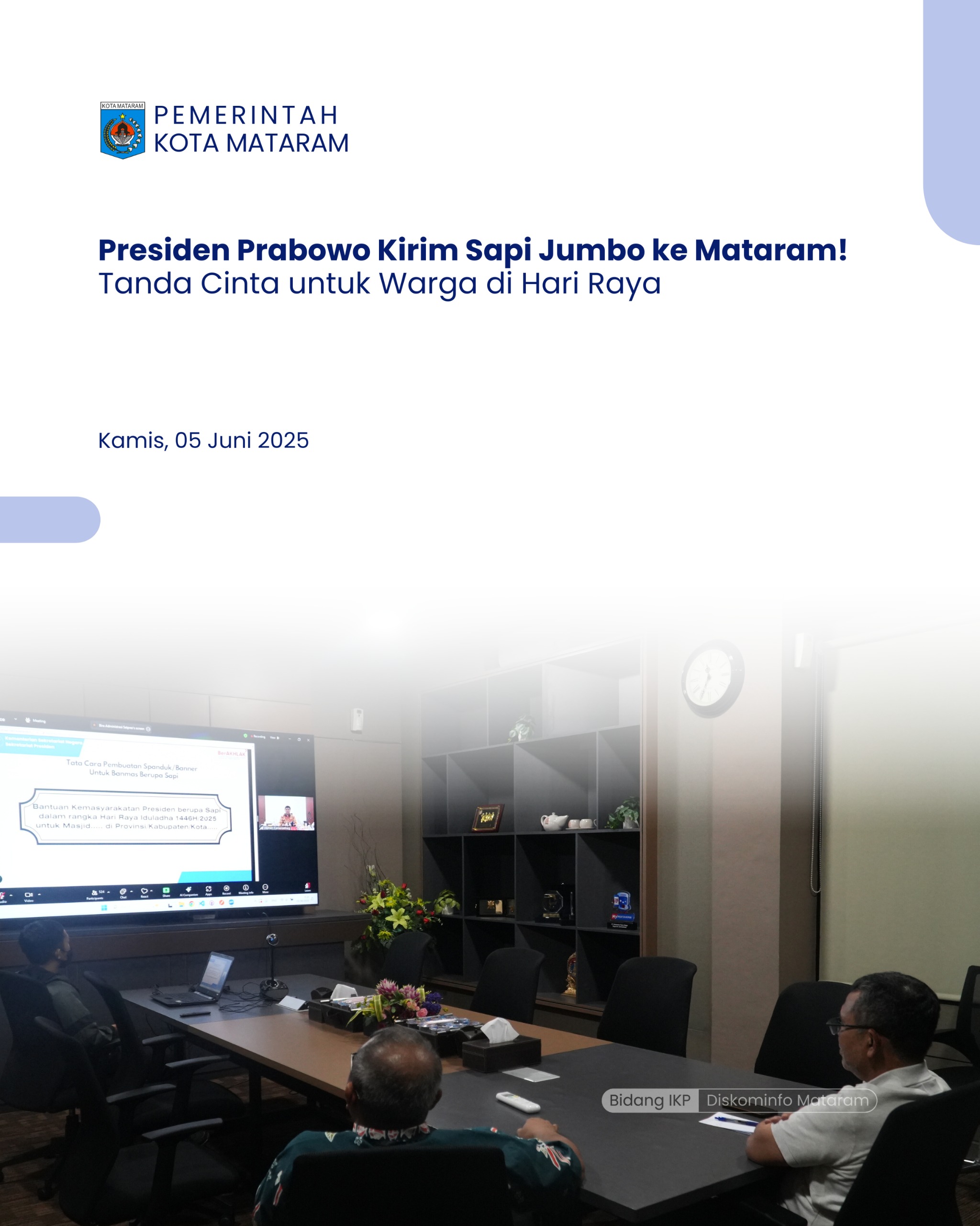 Penyerahan hewan kurban ini dilakukan secara daring dan diwakili langsung oleh Wakil Menteri Sekretaris Negara, Juri Ardiantoro. Pemerintah Kota Mataram menerima secara simbolis bantuan tersebut melalui Plh Sekretaris Daerah (Sekda) Kota Mataram, H. M. Ramayoga, dan Kepala Bagian Kesejahteraan Rakyat Kota Mataram, Amir Wisuda, dalam acara yang berlangsung di Ruang Sekda Kota Mataram, Kamis (5/6/2025).